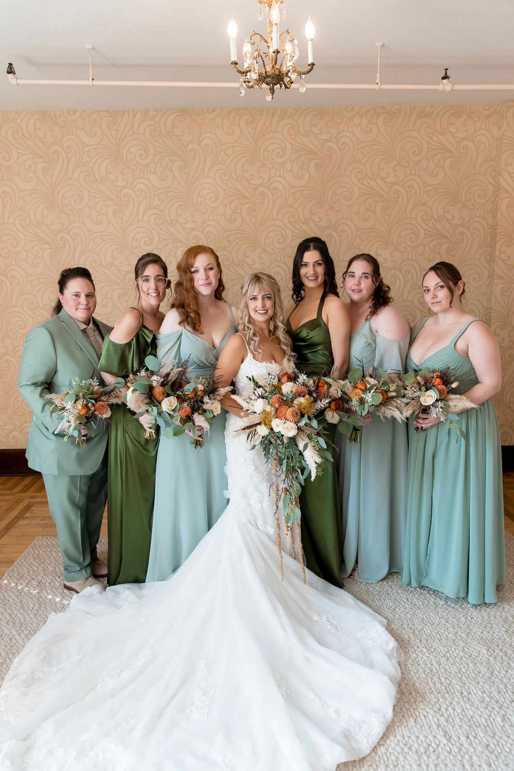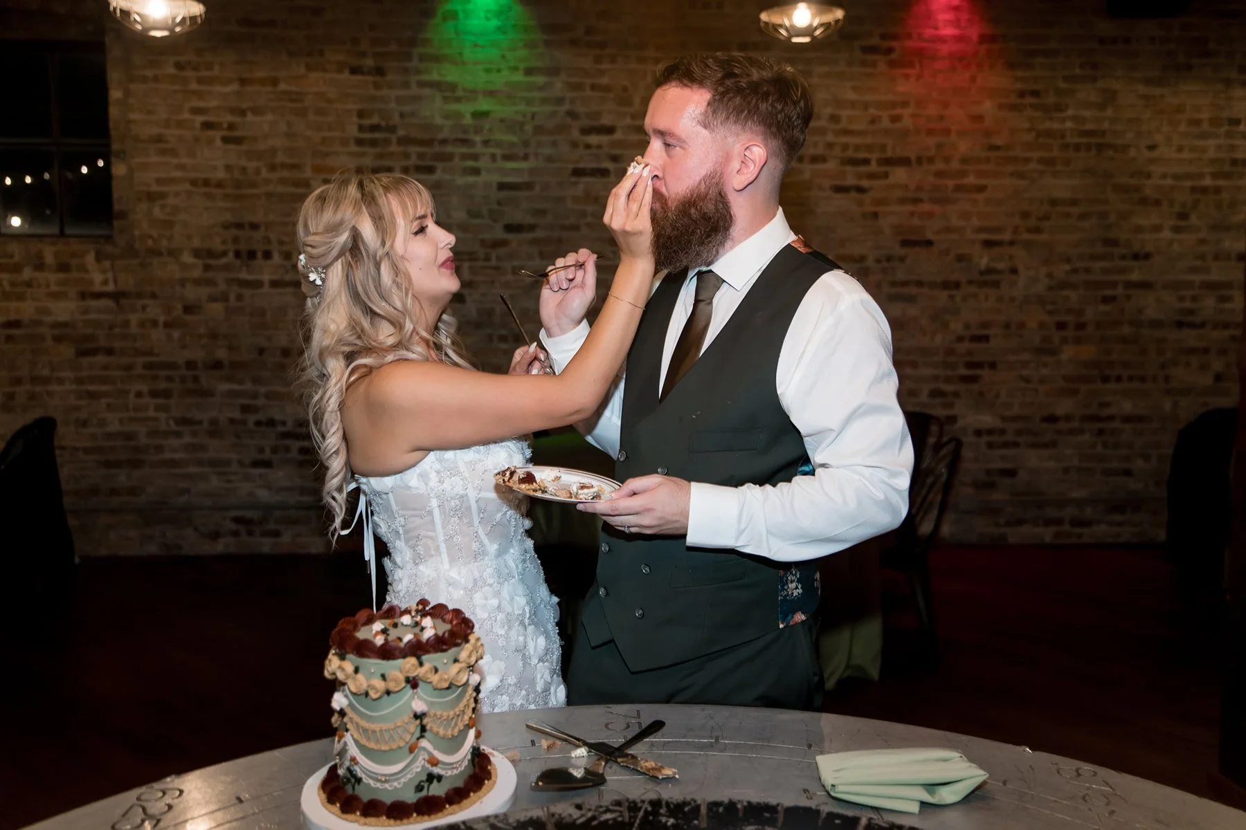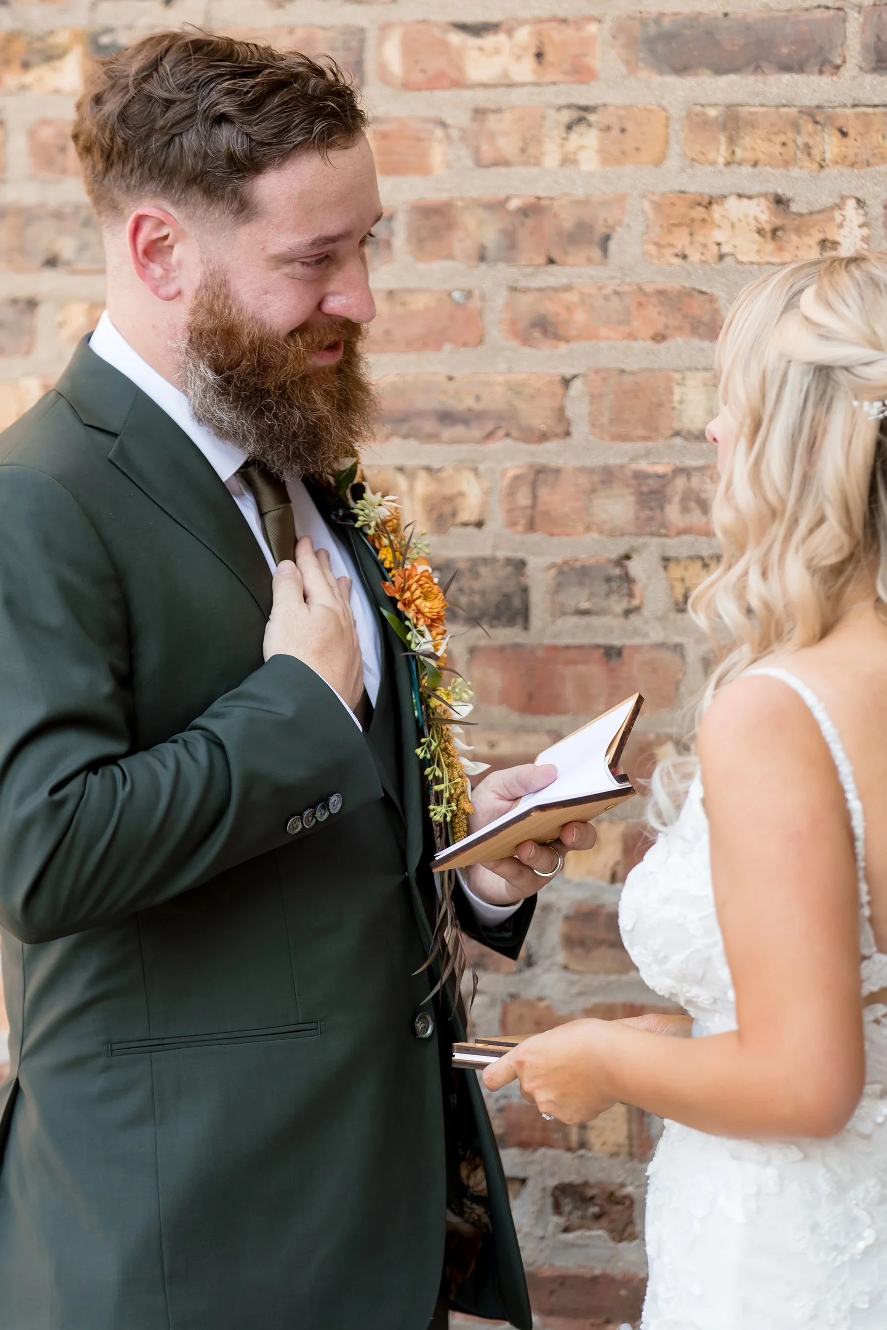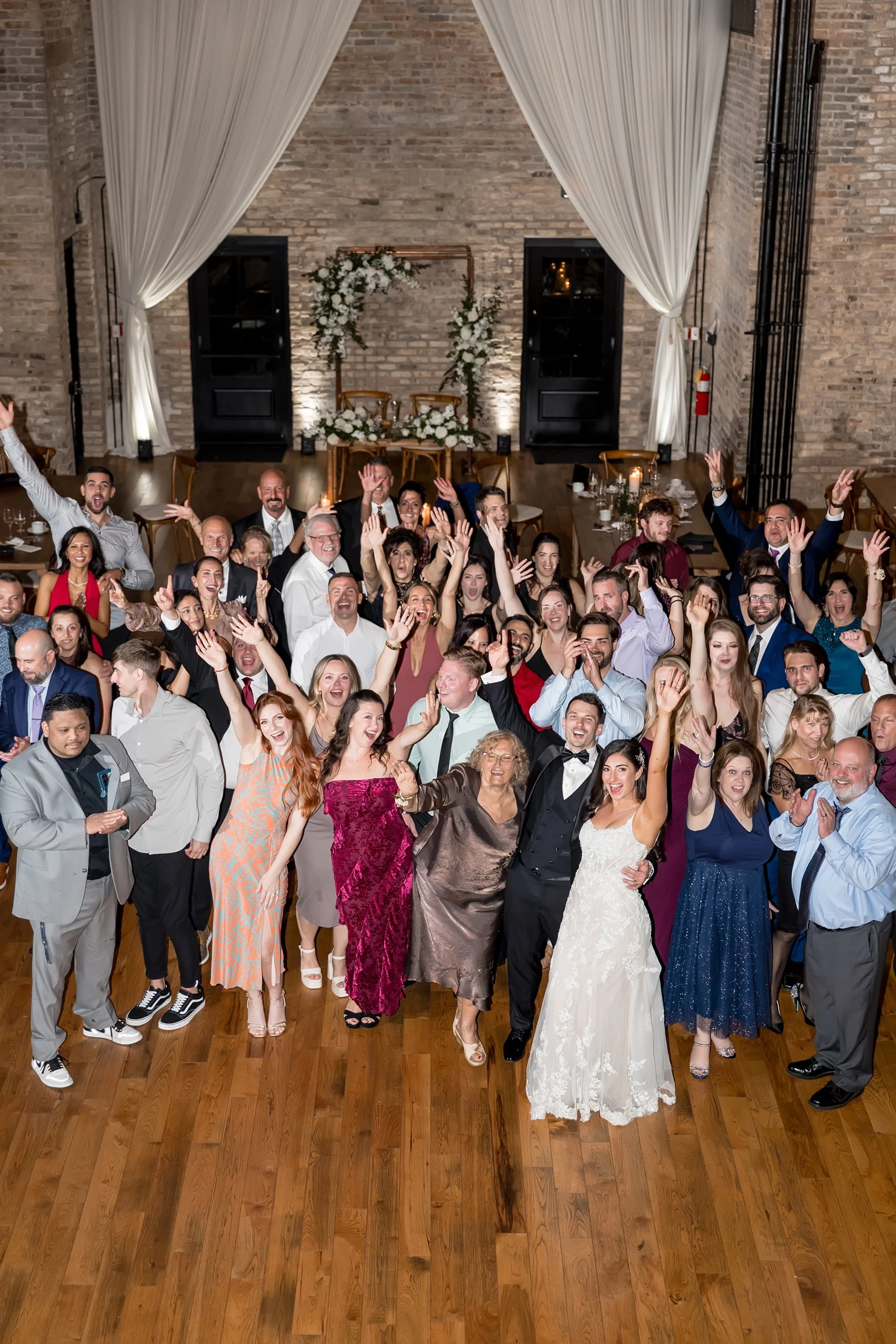 Once Michelle and the girls were ready we made our way to The Grove for her first look with Nolan. They shared a sweet and emotional private moment together there before riding together with their awesome bridal party downtown to Salvage One. After taking some fun wedding party photos on the second floor we made our way downstairs for their ceremony. Michelle’s brother in law served as their officiant during the beautiful ceremony; when Michelle and Nolan shared their vows with one another there wasn’t a dry eye in the house. They shared their first kiss as husband and wife and the celebration really began!