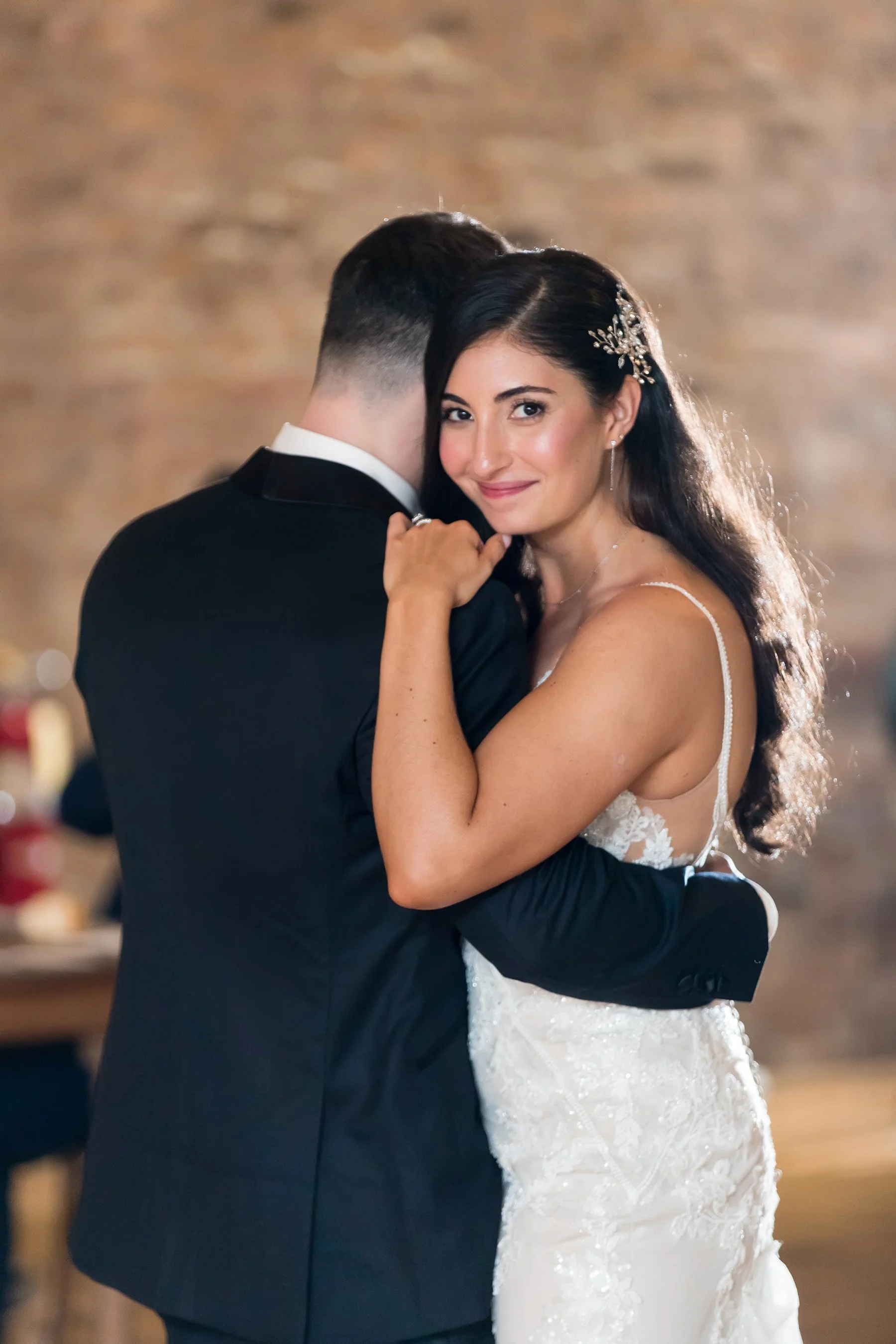 After cocktail hour Ariana and Andrew were introduced and went right into their first dance as husband and wife, it was beautiful with the sunlight streaming into the great hall. They were surrounded by the love of their friends and family and treated to some emotional toasts on their behalf. We couldn’t stop giggling when Andrew’s best man took a big bite out of the BIG cannoli that held countless little cannolis on their sweets table. And just before we departed we were grateful for some soft pretty sunset light for a few last photos of Ariana and Andrew together. It was a perfect day and we were so grateful to be a part of it!