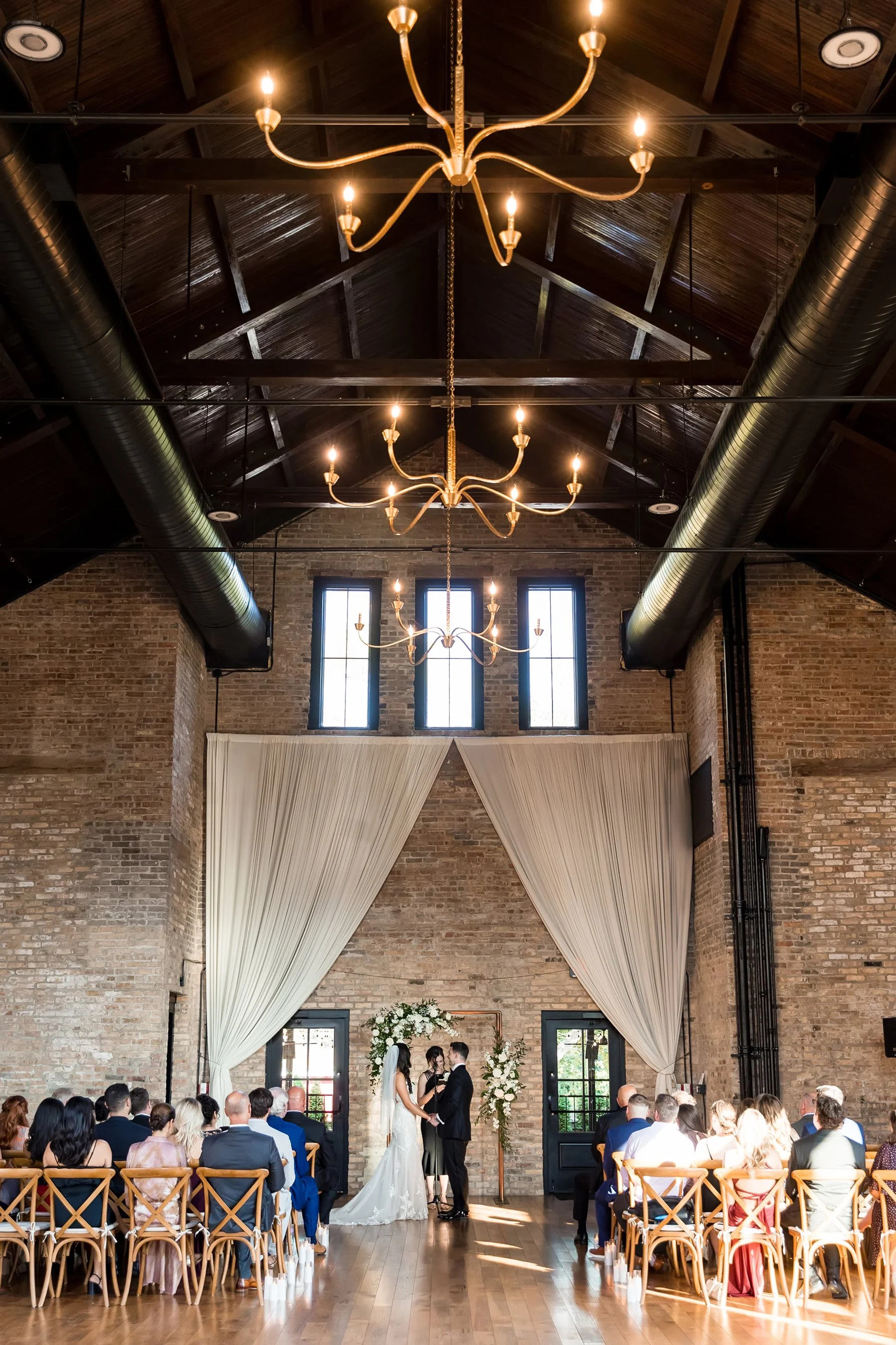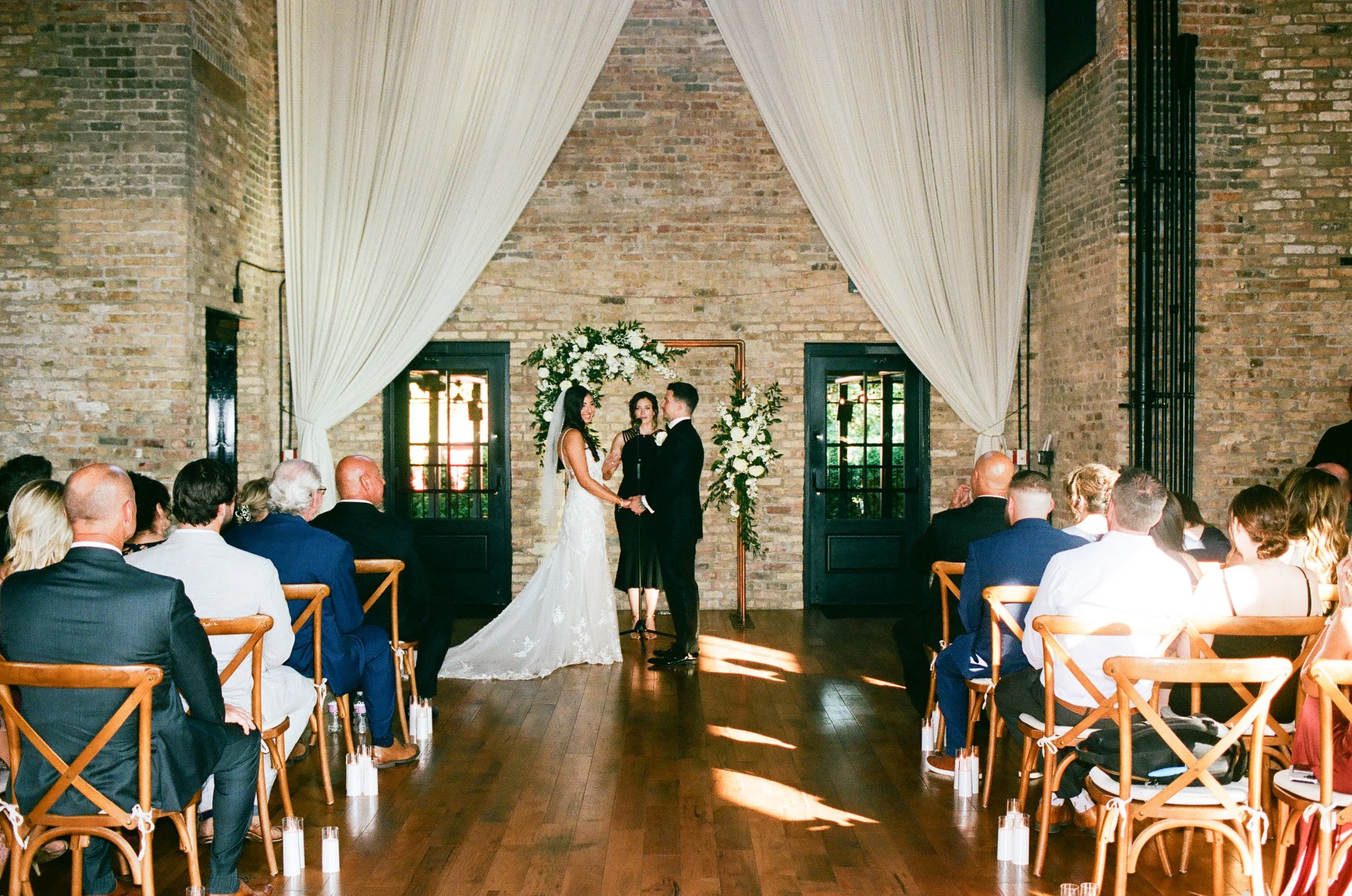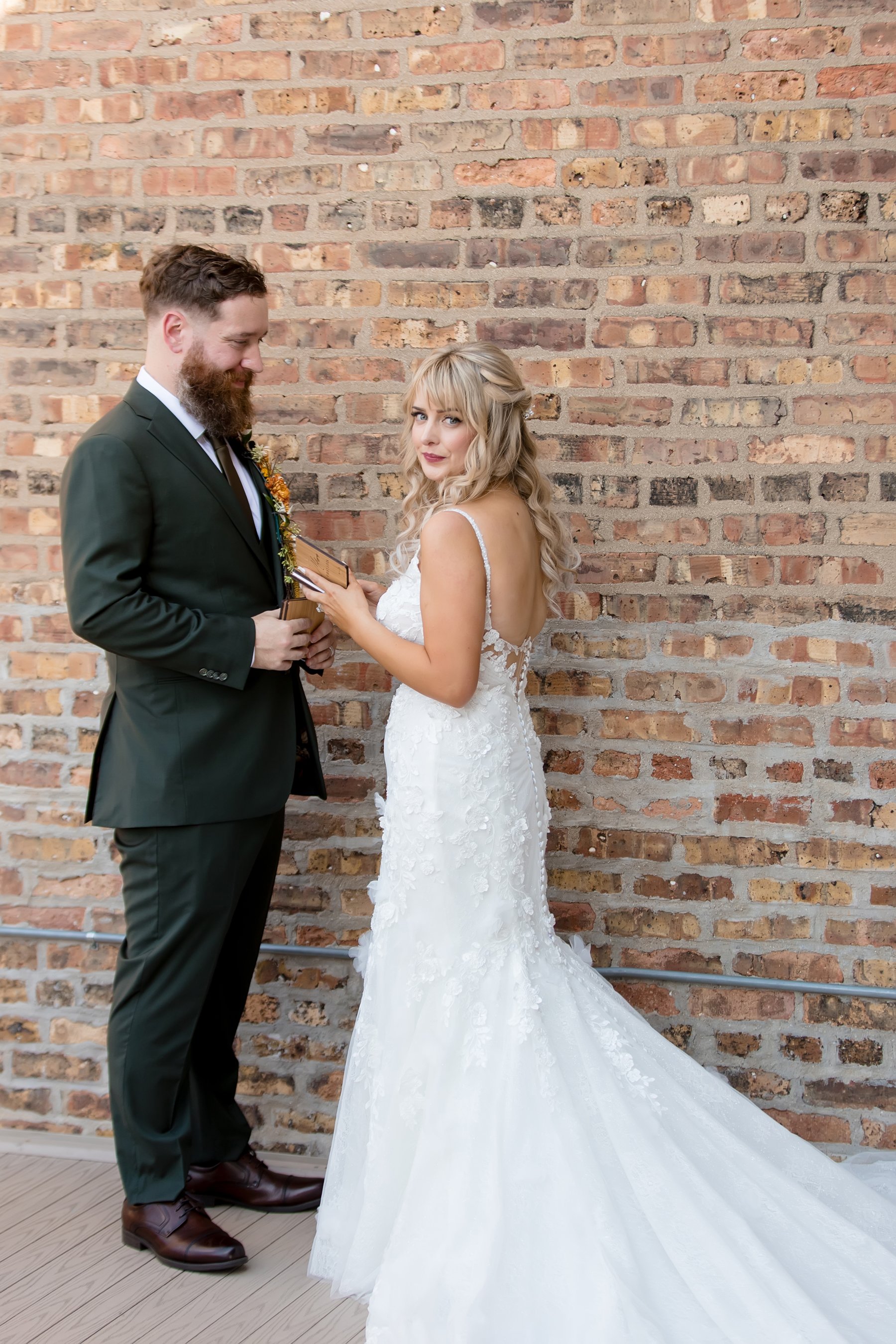 Michelle and Nolan share an eclectic love of music and all things vintage, so choosing to throw their wedding celebration at Salvage One just made sense. The 60,000-square-foot vintage Chicago warehouse with exposed brick walls, expansive windows, and rich wooden floors, isn’t just a venue—it’s an experience. We knew after shooting Michelle and Nolan’s stunning engagement session at Salvage One last Fall that their wedding would be unforgettable.