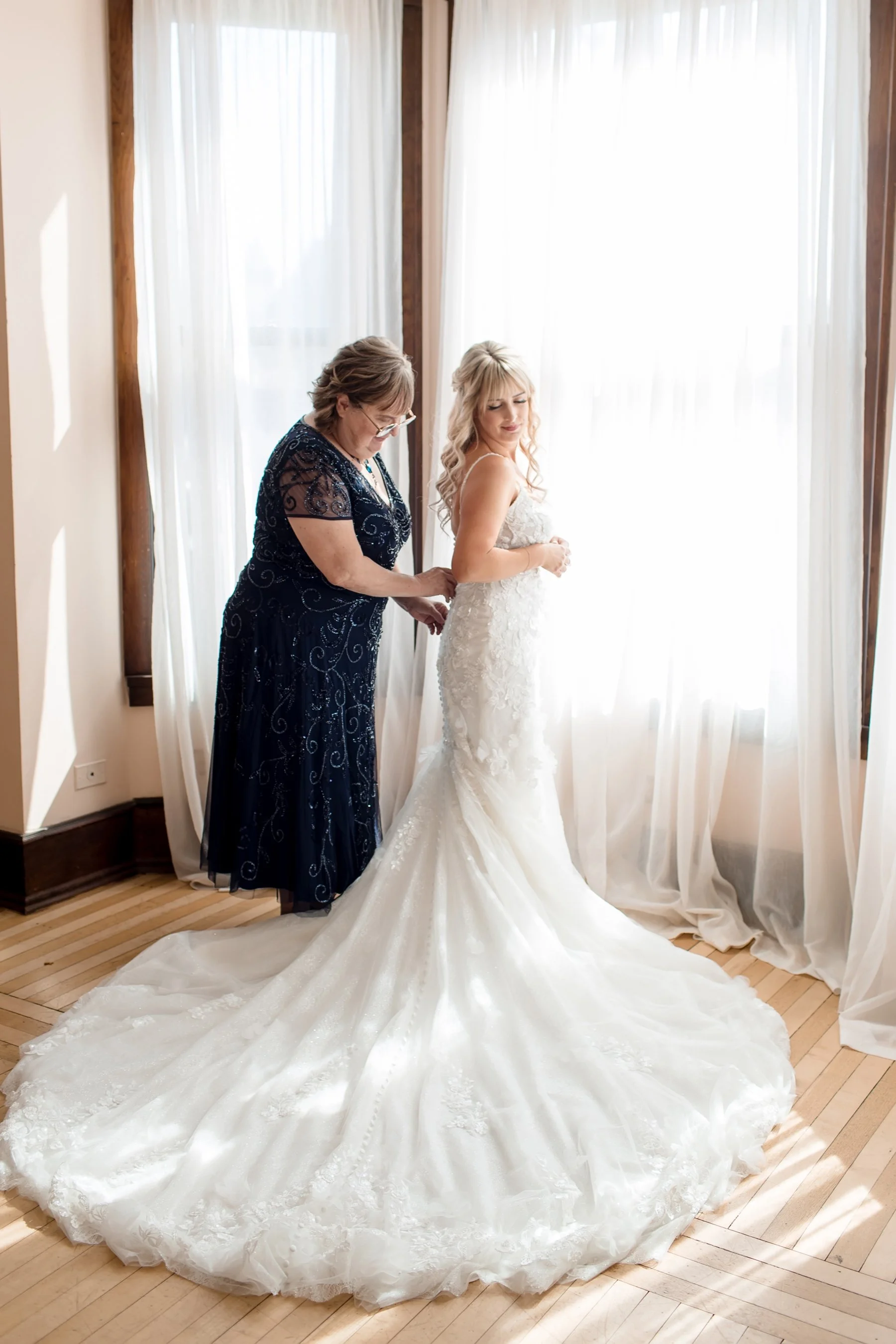 Conrad loved spending time with Emma and Brett at their engagement session last Fall and was so excited to celebrate their wedding with them this June! After a bit of a long engagement Emma and Brett were so happy to finally become husband and wife! It was quite hot on their wedding day but both Emma and Brett were troopers and made sure to take plenty of great photos outside on the beautiful grounds at Makray Memorial Golf Club. Brett carried his great-grandfather’s pocket watch and Emma wore fun blue shoes, we just love the little details that make each wedding special!
