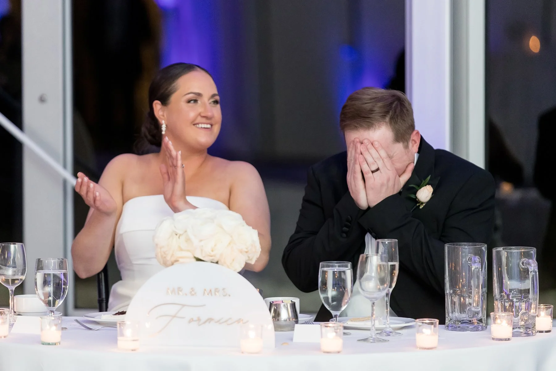 The weather was a bit unpredictable on Tracy and Greg’s wedding day so they made the decision to move their ceremony inside. It didn’t end up raining and we were blessed with a gorgeous sunset after they were officially married. We took stunning pictures by the water before heading back inside for an unforgettable night of great food and Tracy dancing and singing to Taylor Swift with her besties – it was such a perfect day and we were honored to be a part of it!