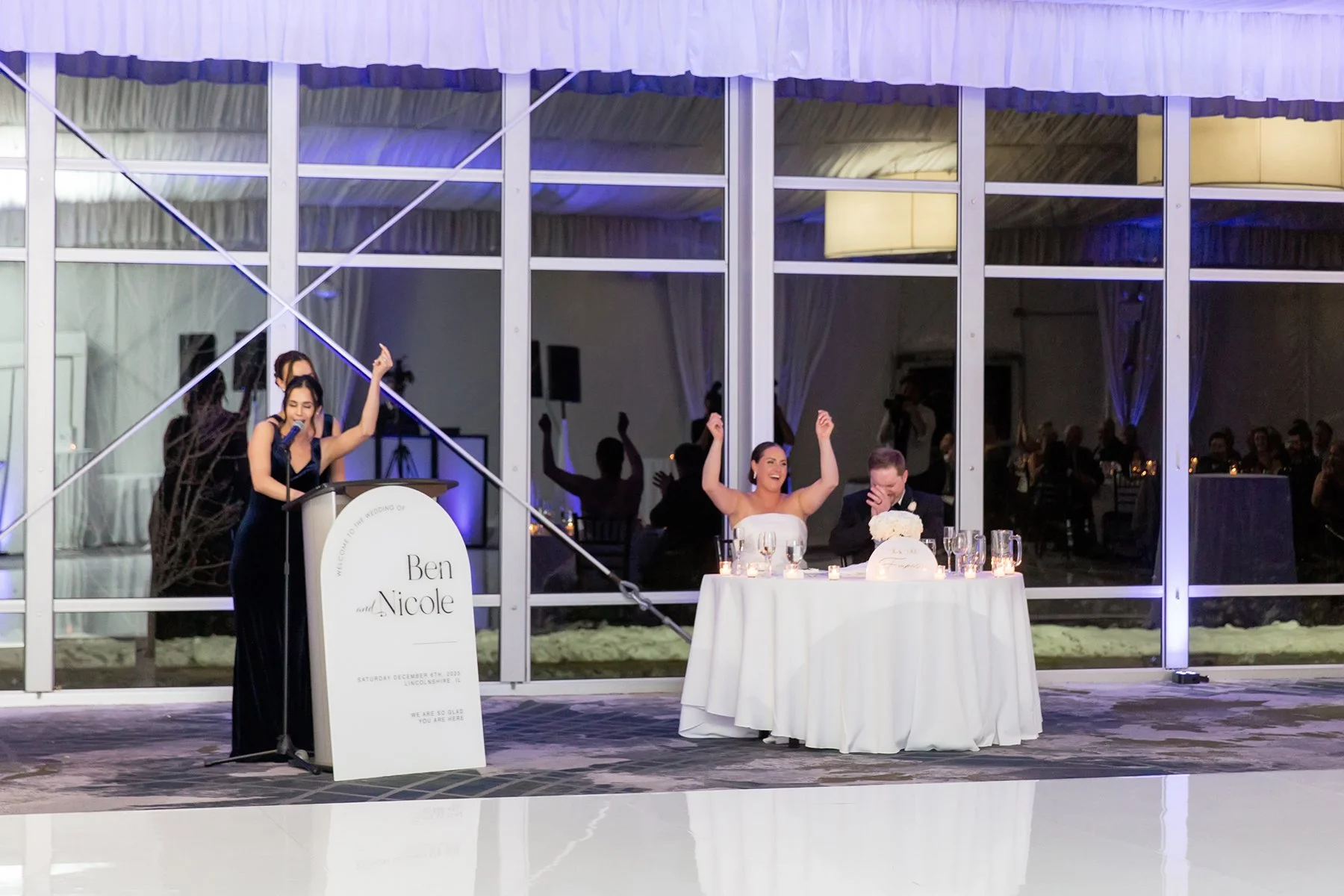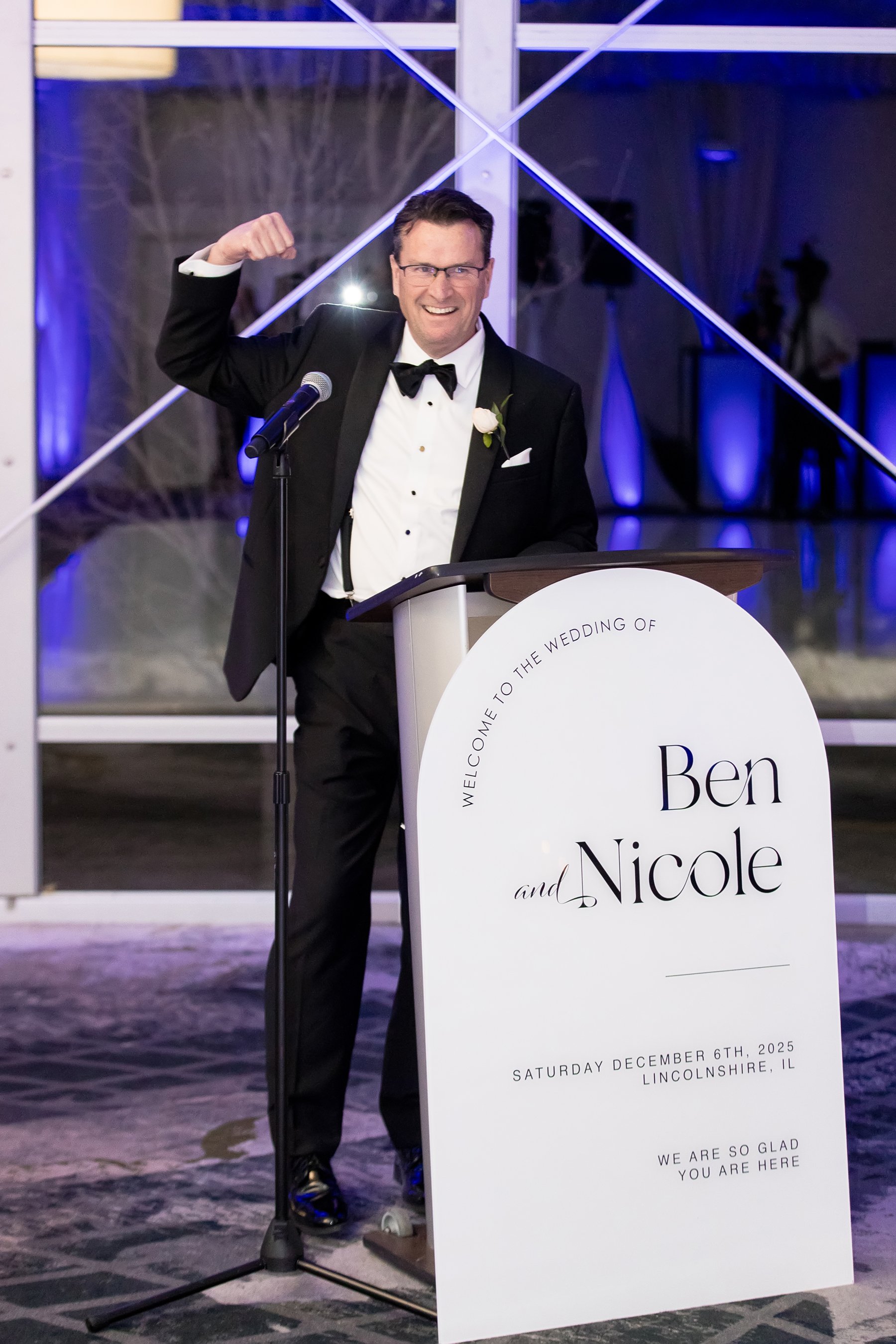 When we got back to the venue we connected with Marcella who had been working with the amazing Lincolnshire Marriott team to make the room absolutely perfect for Nicole and Ben’s reception. We were excited to see our old friend Rob from Monastero Entertainment, he did a great job as always serving as emcee and even treated the guests to a little Frank Sinatra during dinner! This was just the most amazing Winter wedding, we loved every moment celebrating this wonderful couple!