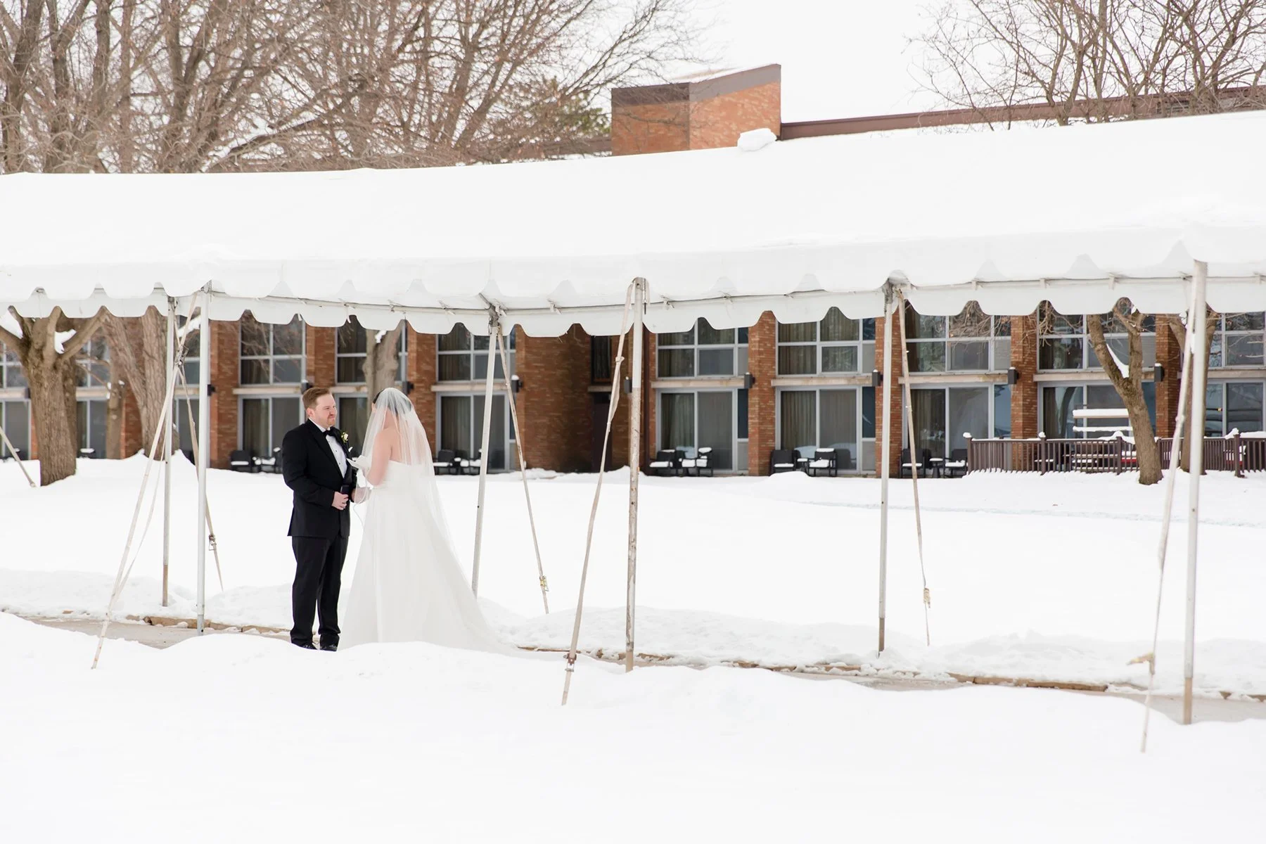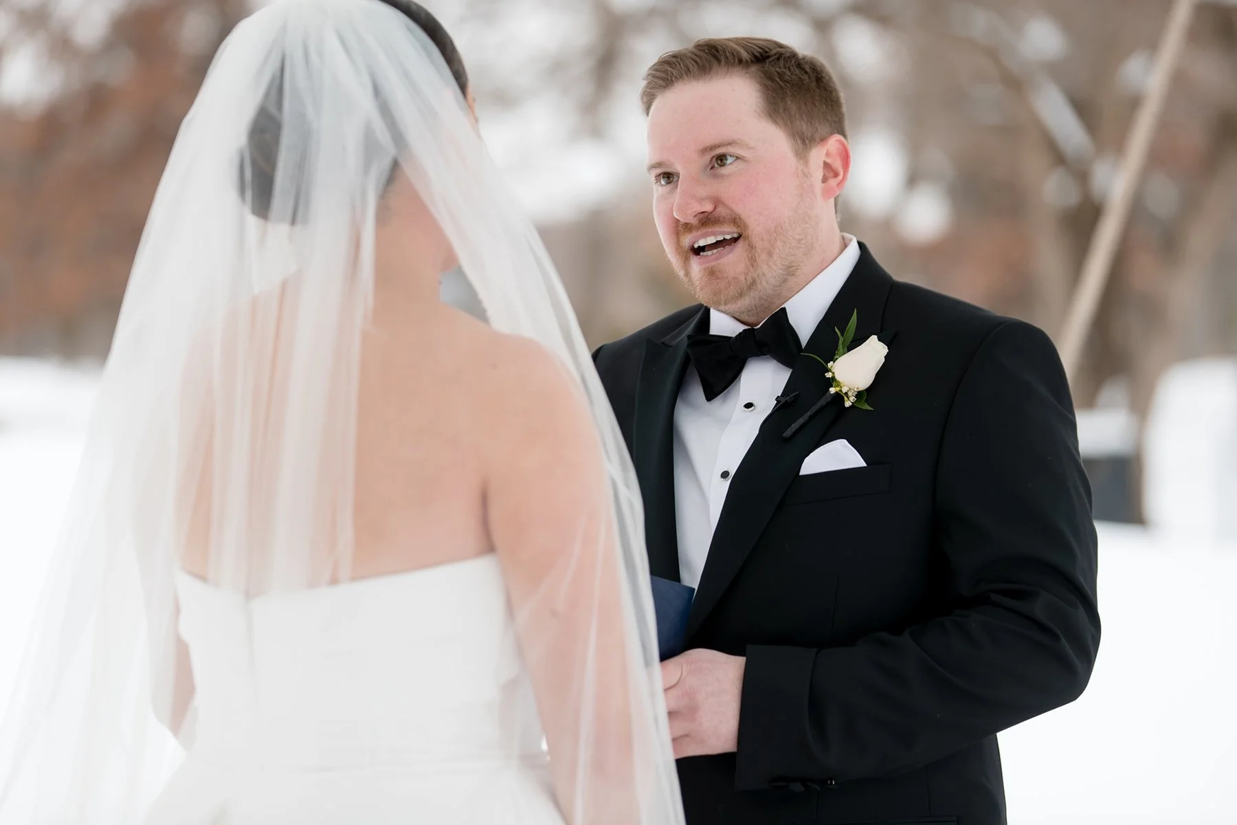 We arrived at the venue we connected with their planner Brianna who helped make sure everything ran smoothly throughout the day. As Greg stood waiting patiently Tracy walked towards him for their first look before they shared the sweetest (and possibly longest?) private vows. Greg carefully typed up a nine-page history of their entire relationship and shared so many thoughtful moments with Tracy as they stood together near the native garden at Independence Grove.