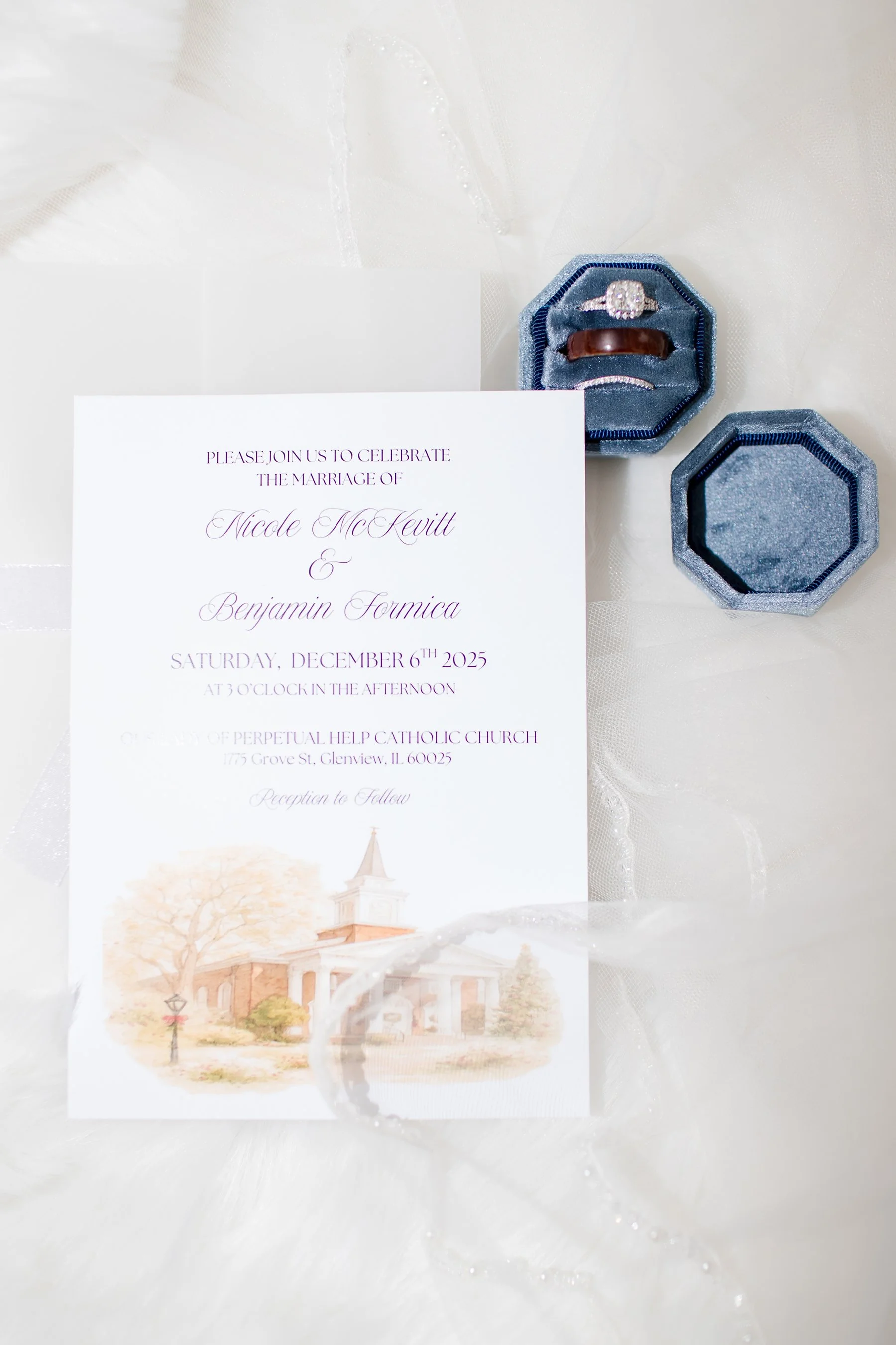 Nicole and Ben first matched on Hinge in 2022 and had their first date at Figo Wine Bar in Chicago. What started as a first date of getting to know each other ended in them talking for hours on end and staying until closing time! Over the last few years Nicole and Ben shared nothing but wonderful memories – trips to Boston, Maine, and Florida, Summer boating days in Wisconsin, co-parenting their bulldog Phyllis, watching every Eagles game, and enjoying every plenty of ice cream along the way! On December 22nd, 2024, Ben took their relationship to the next level and proposed at the Chicago Botanic Garden with both of their families there to witness, and they started the exciting process of planning a wedding!