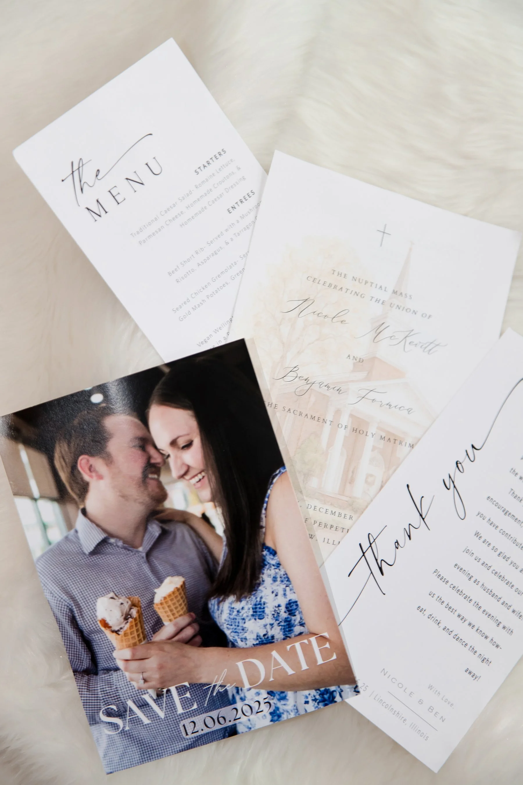 Sarah and Ryan first met in February 2017 at a Harper Baseball party. Her friend Jessica had a crush on Ryan at the time, and Sarah could totally see why. Months later, Ryan and Sarah rekindled through her friend Jessica and the rest is history. Sarah and Ryan have been together since October of 2017 and got engaged in April of 2024 while on a trip with friends in Galena, Ryan had planned the perfect moment to ask Sarah to marry him and they then celebrated with their closest family and friends.