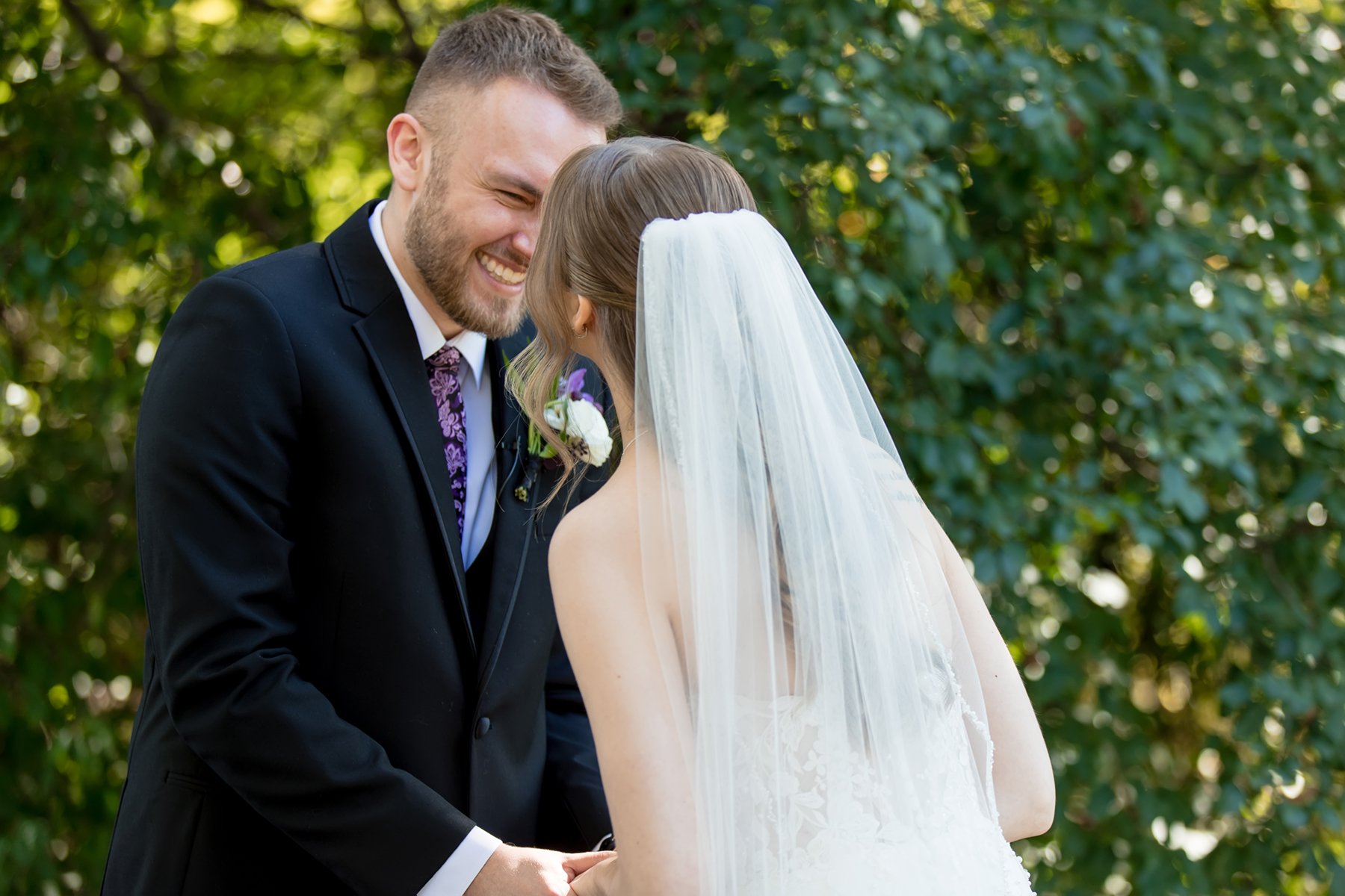 After Conrad shot Alexis and Bennet’s engagement session at The Morton Arboretum last Fall we were both really excited for their wedding day. Conrad told me about how Alexis and Bennet are so at-ease with one another and how they were such fun to photograph – they truly are soulmates and being in their presence feels like such an honor. When it came time to celebrate their wedding Conrad and I kept commenting to each other throughout the day that it hardly felt like work at all, we just had the best time being in the presence of this perfect couple. Alexis looked absolutely gorgeous and Bennet’s response to seeing her was adorable. After their first look they shared emotional private vows – what little we could overhear only confirmed that these two were made for one another.
