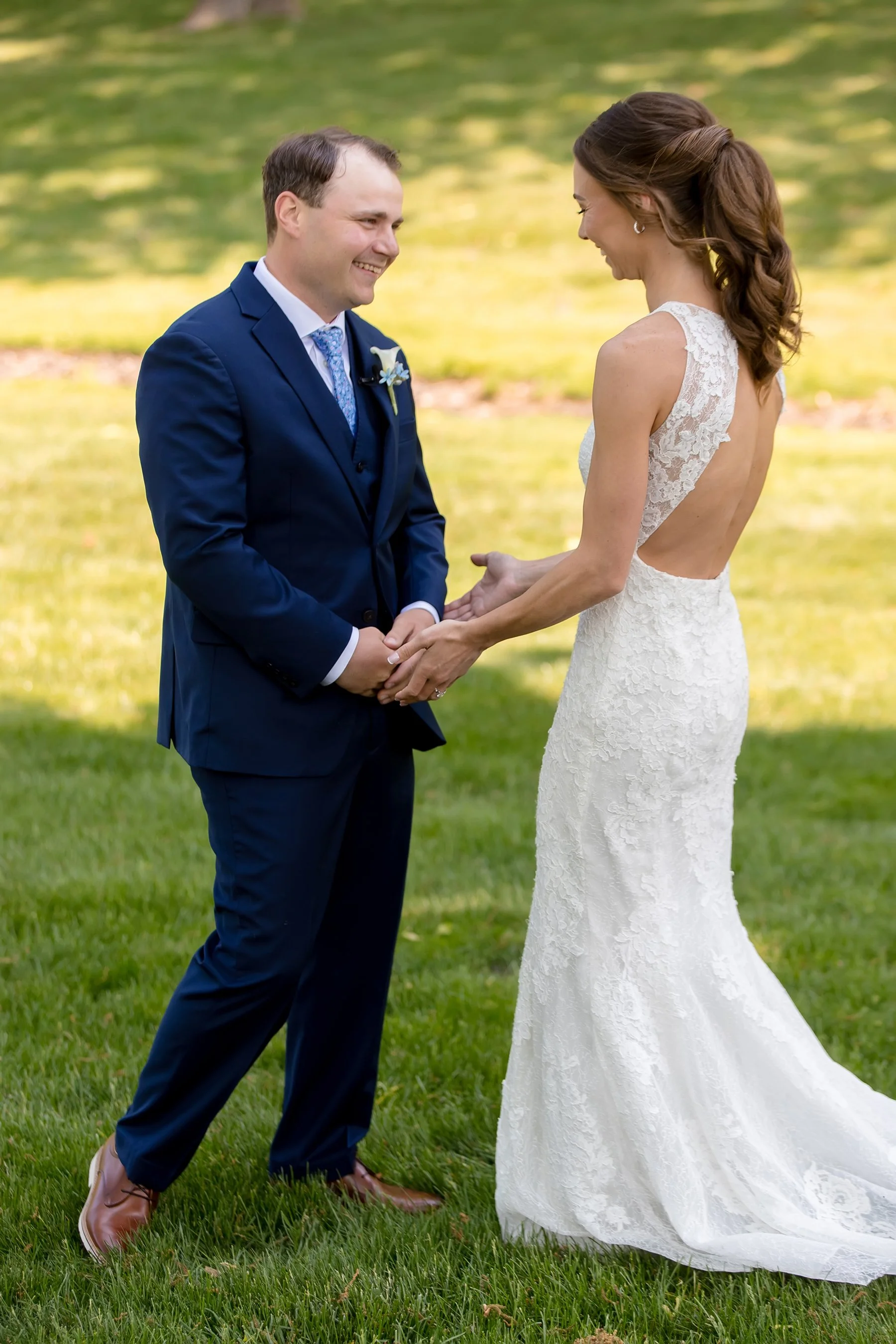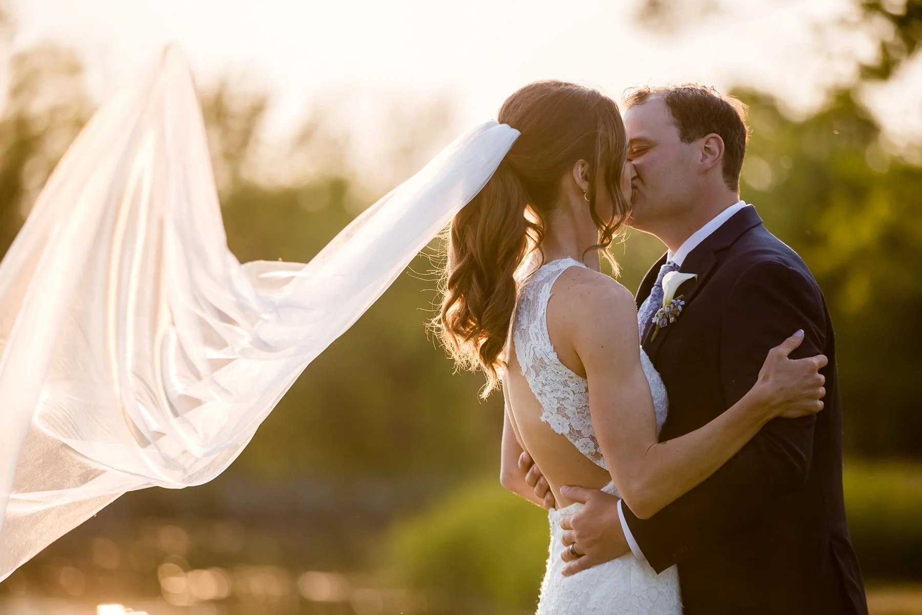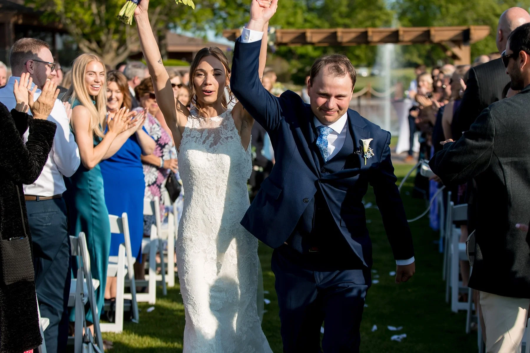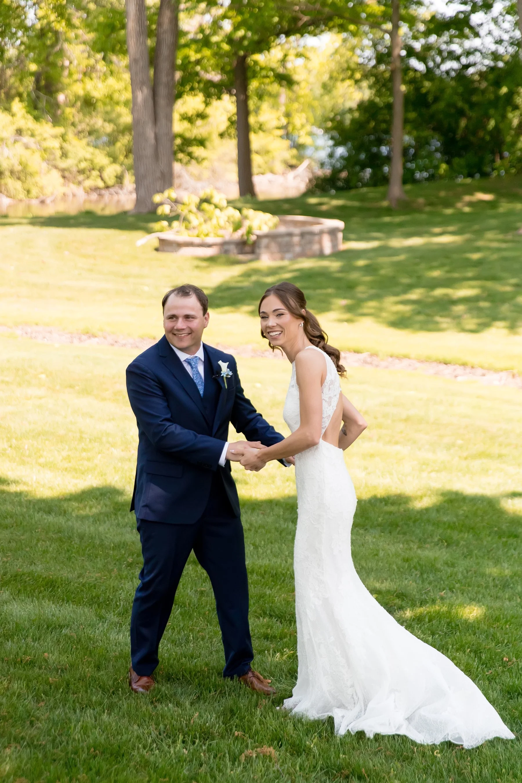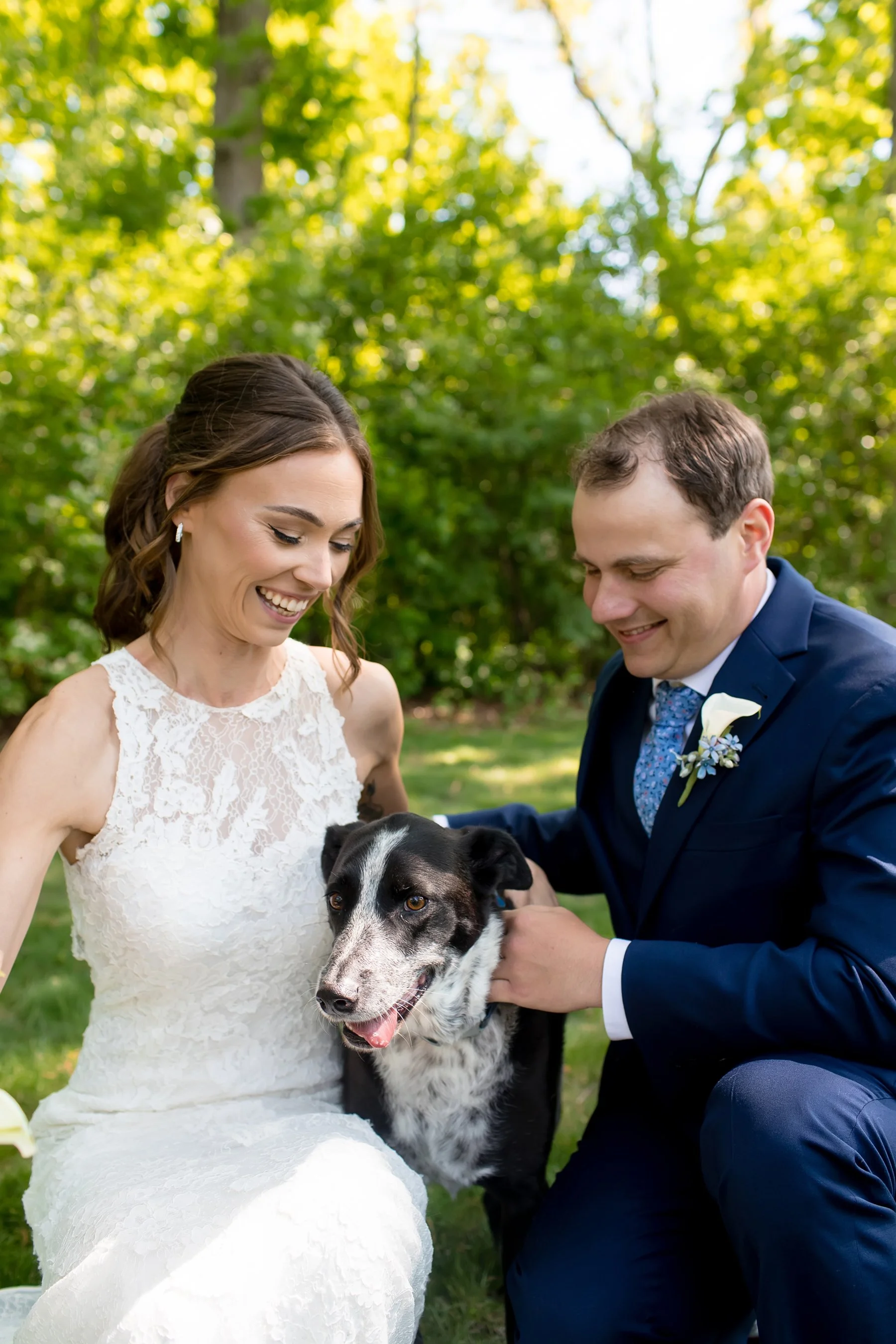 I first met Brittany and Jake over Zoom and loved their laid-back energy, I was so excited to get to know them both at their wedding at the beautiful Kemper Lakes! It was a beautiful Saturday when Conrad, Ryan and I arrived at Brittany’s grandparents’ house for getting ready photos. Their large and beautiful backyard was the perfect spot for Brittany and Jake’s emotional first look and private vows, such sweet moments set against the prettiest Midwestern backdrop! After taking some fun pictures with their wedding party and adorable dog Juno we made our way to Kemper Lakes. Everything looked so pretty at Kemper Lakes and we enjoyed their sweet ceremony overlooking the water (complete with a unity shot ski!)