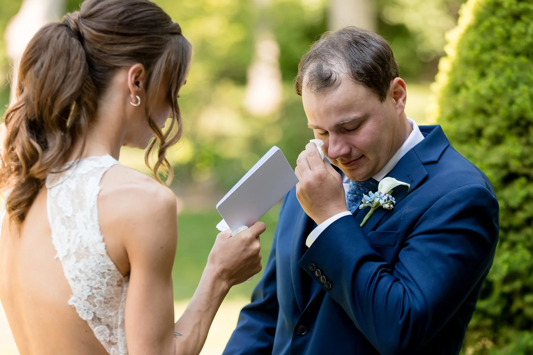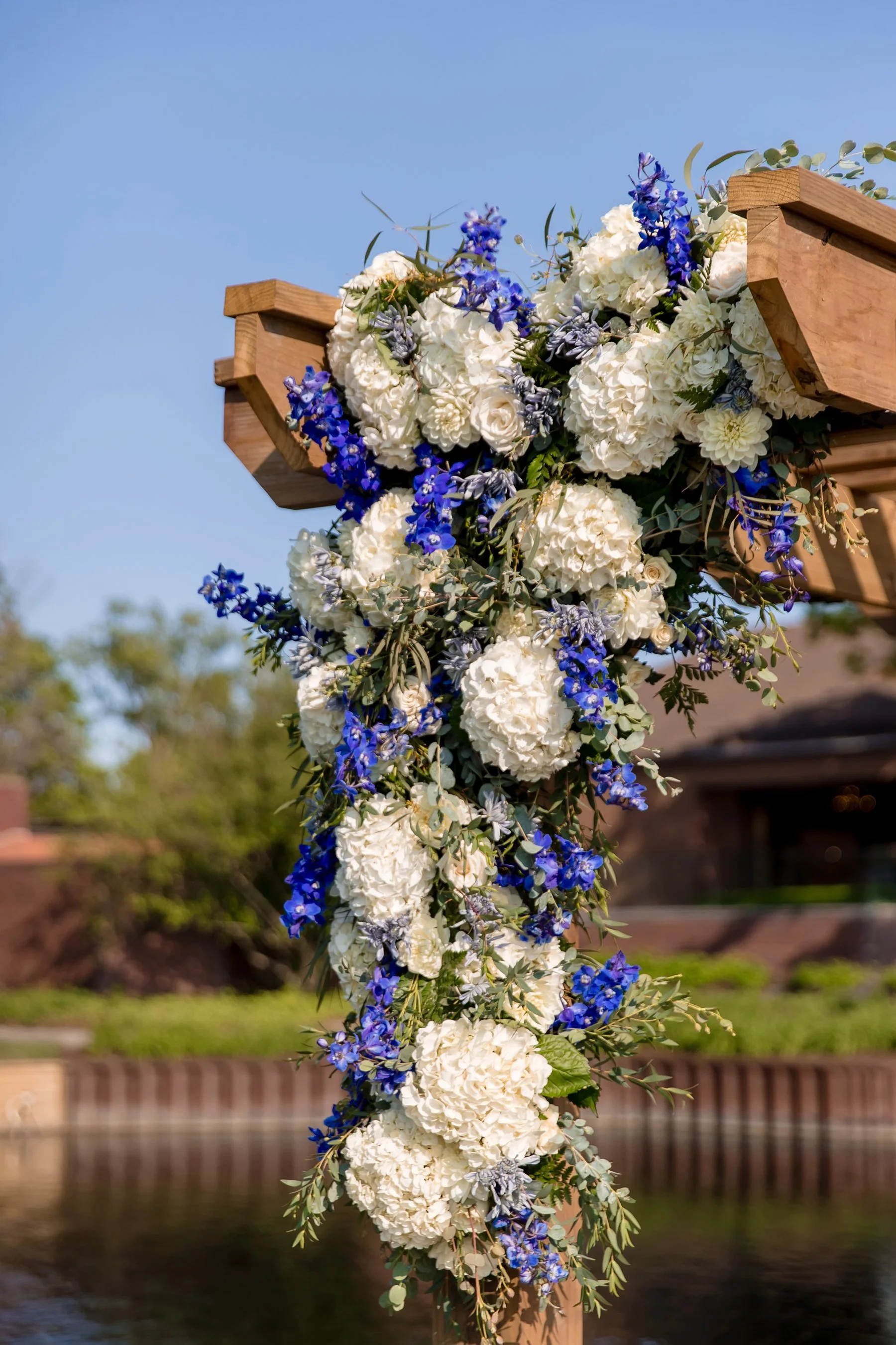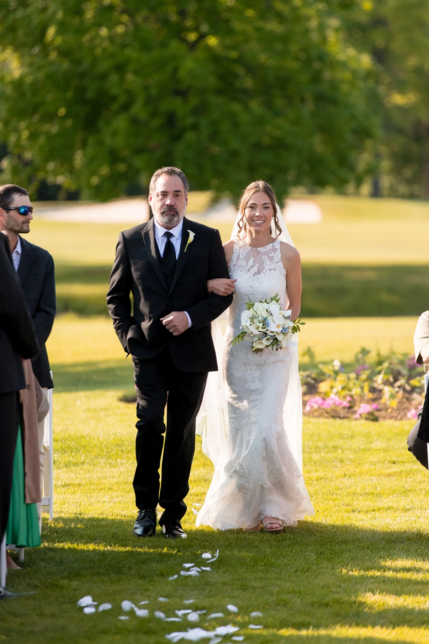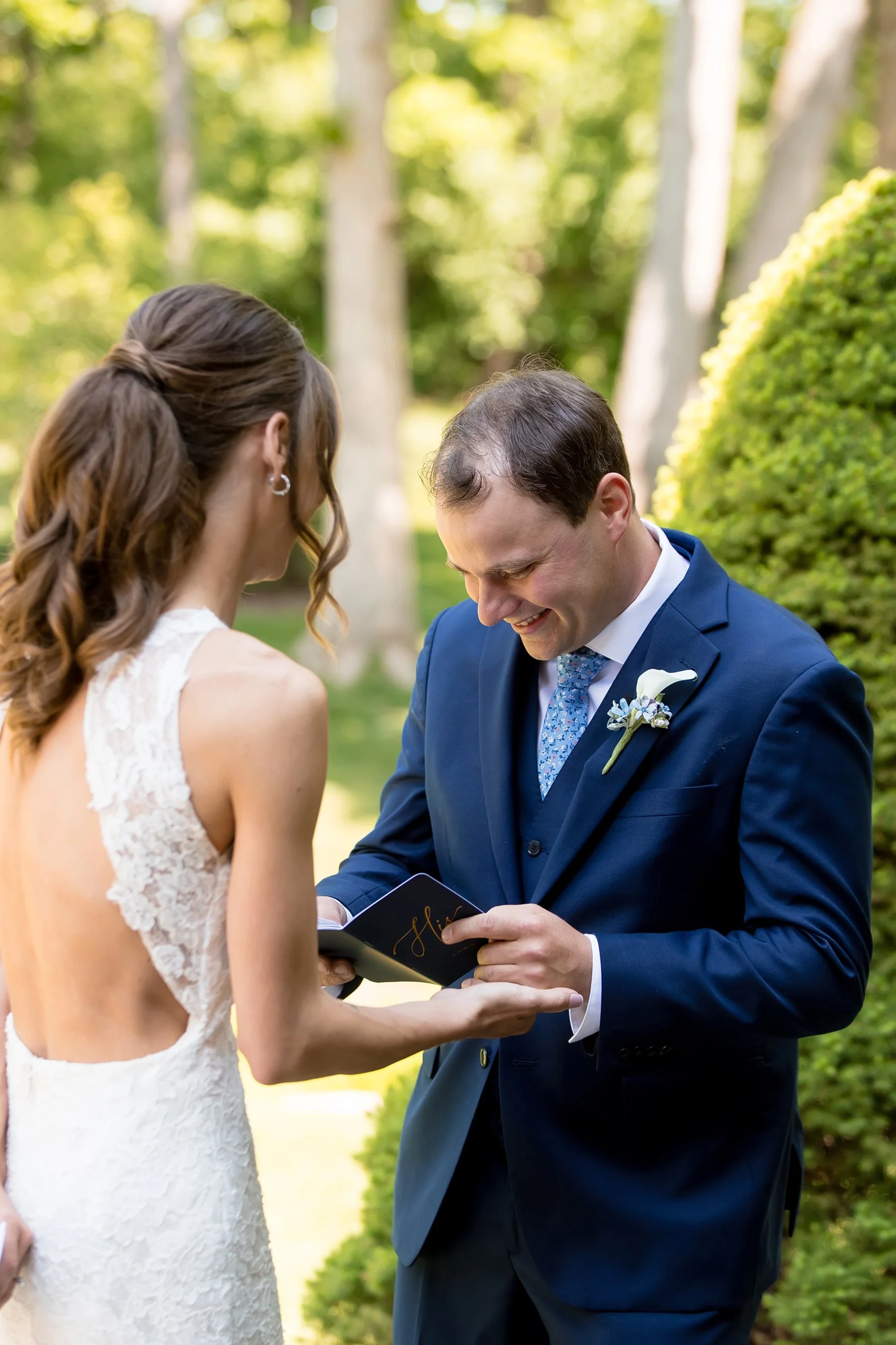 I first met Brittany and Jake over Zoom and loved their laid-back energy, I was so excited to get to know them both at their wedding at the beautiful Kemper Lakes! It was a beautiful Saturday when Conrad, Ryan and I arrived at Brittany’s grandparents’ house for getting ready photos. Their large and beautiful backyard was the perfect spot for Brittany and Jake’s emotional first look and private vows, such sweet moments set against the prettiest Midwestern backdrop! After taking some fun pictures with their wedding party and adorable dog Juno we made our way to Kemper Lakes. Everything looked so pretty at Kemper Lakes and we enjoyed their sweet ceremony overlooking the water (complete with a unity shot ski!)