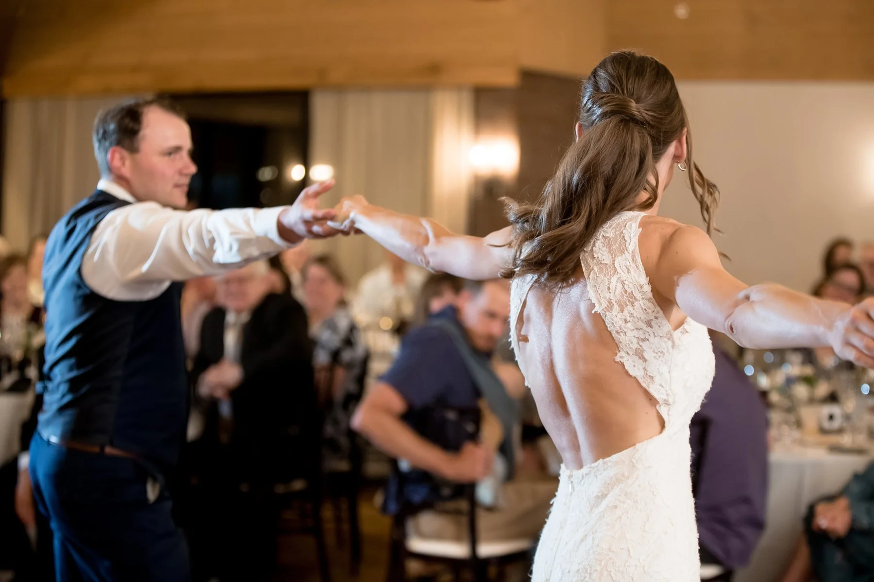 Once Brittany and Jake were officially married we took just a few more photos before the celebration really began. The sun graced us with beautiful golden light just before the reception started and we got a lot of really pretty pictures of Brittany and Jake cutely practicing their first dance together out by the water. What a true joy it was for us to be around this adventurous, kind, and light-hearted couple on their wedding day!