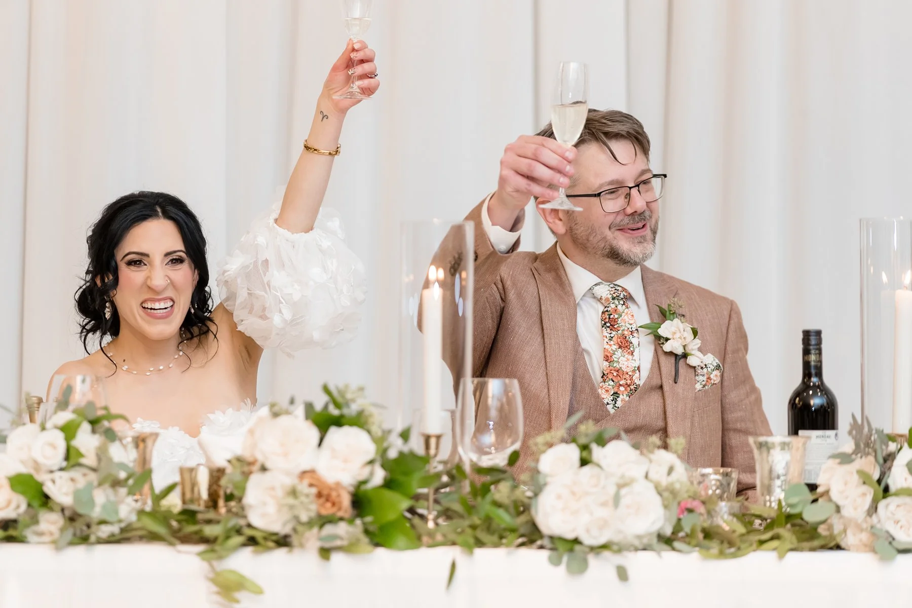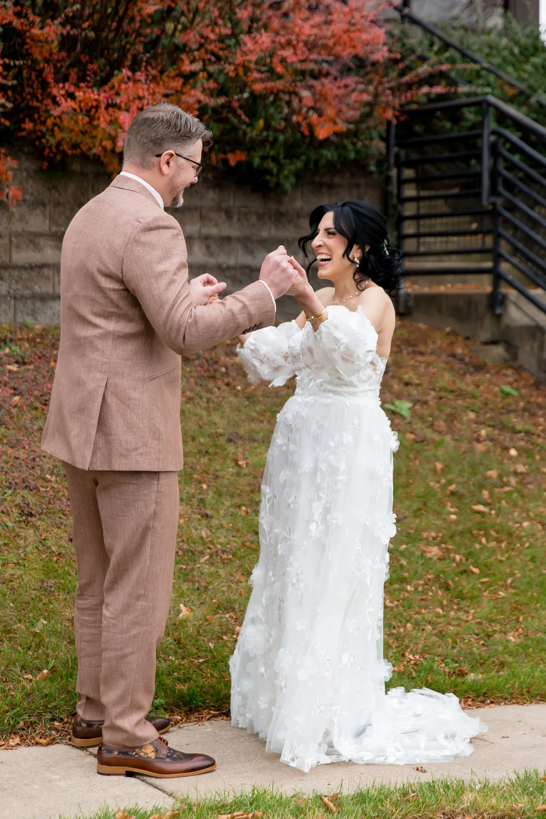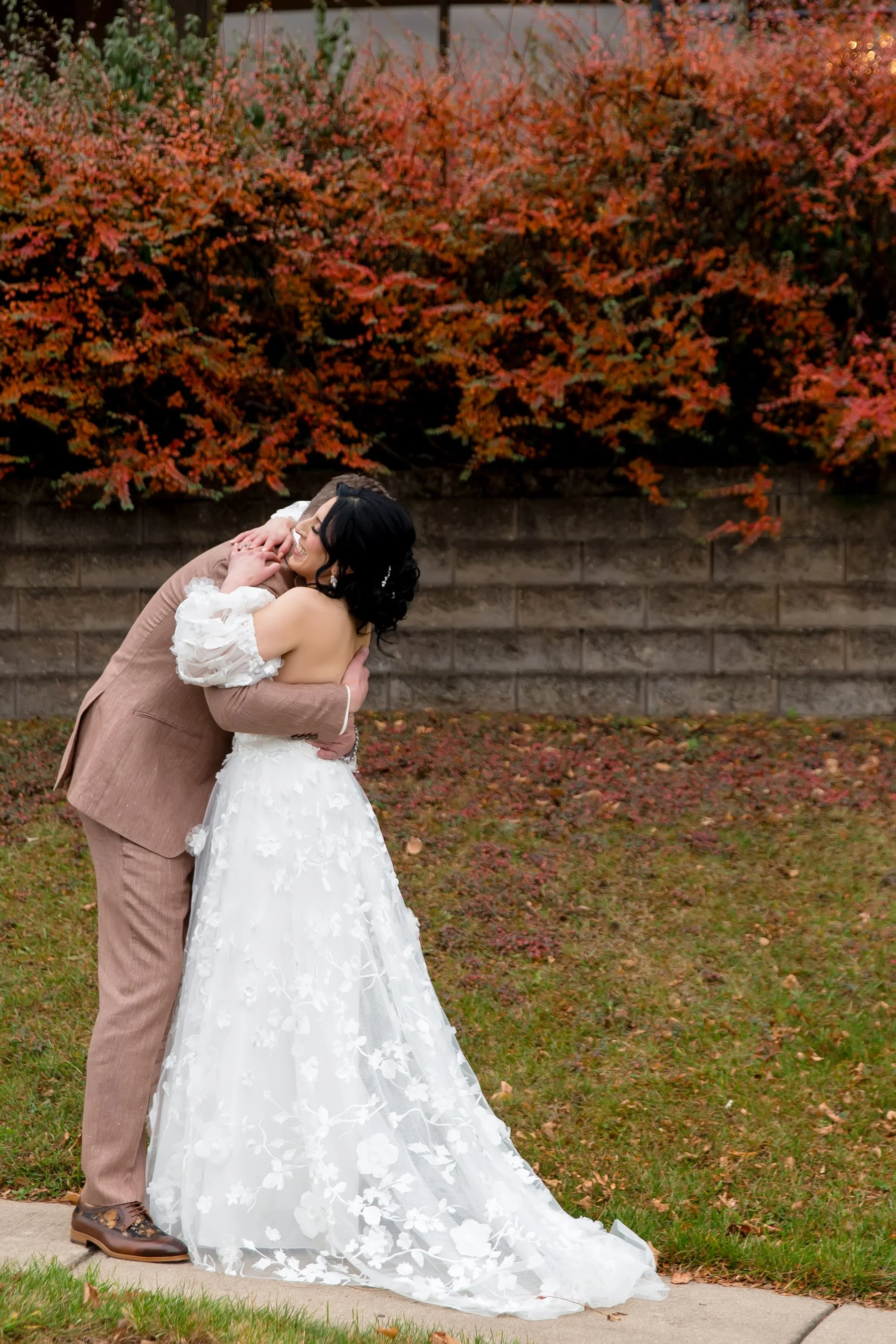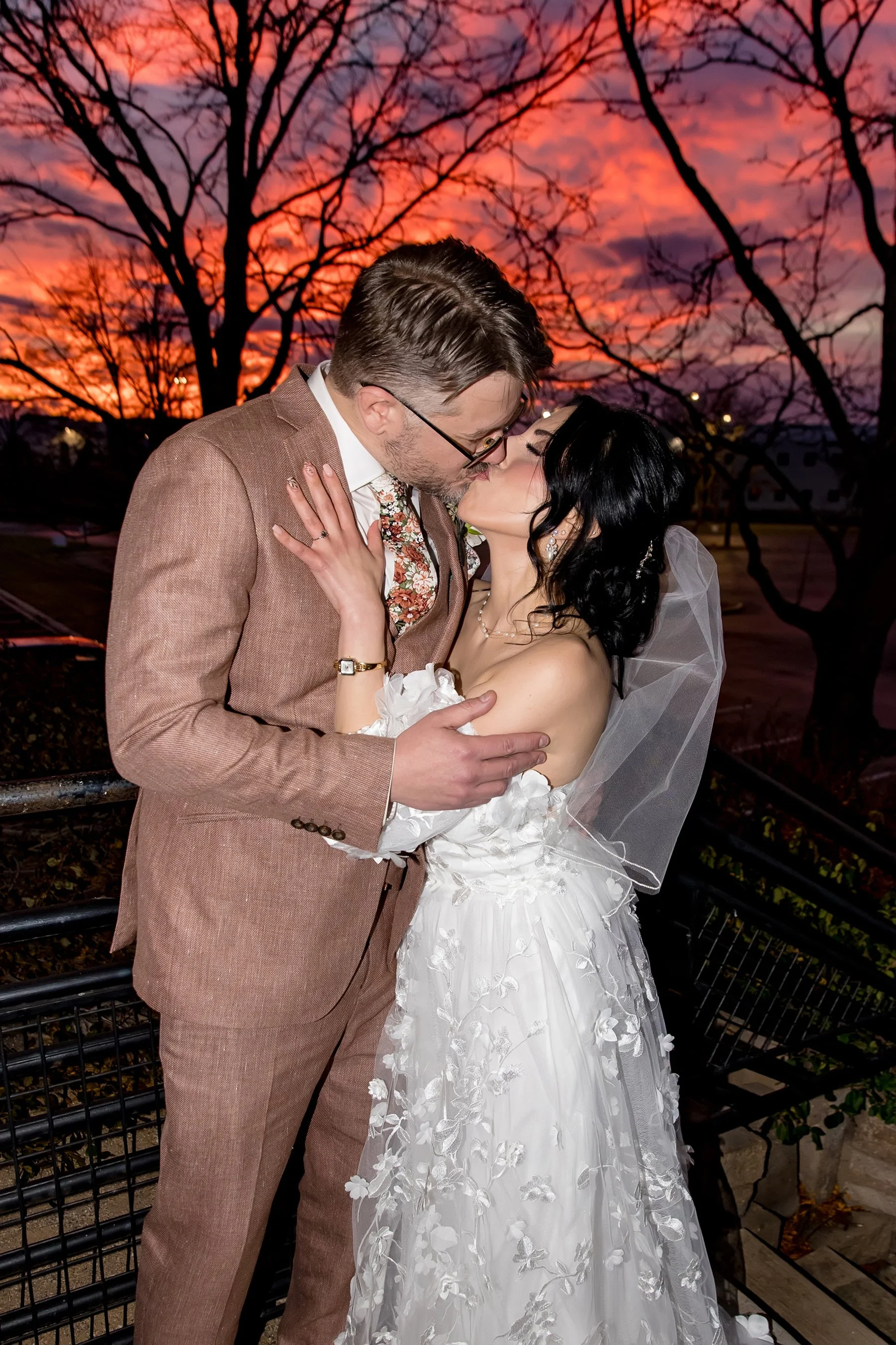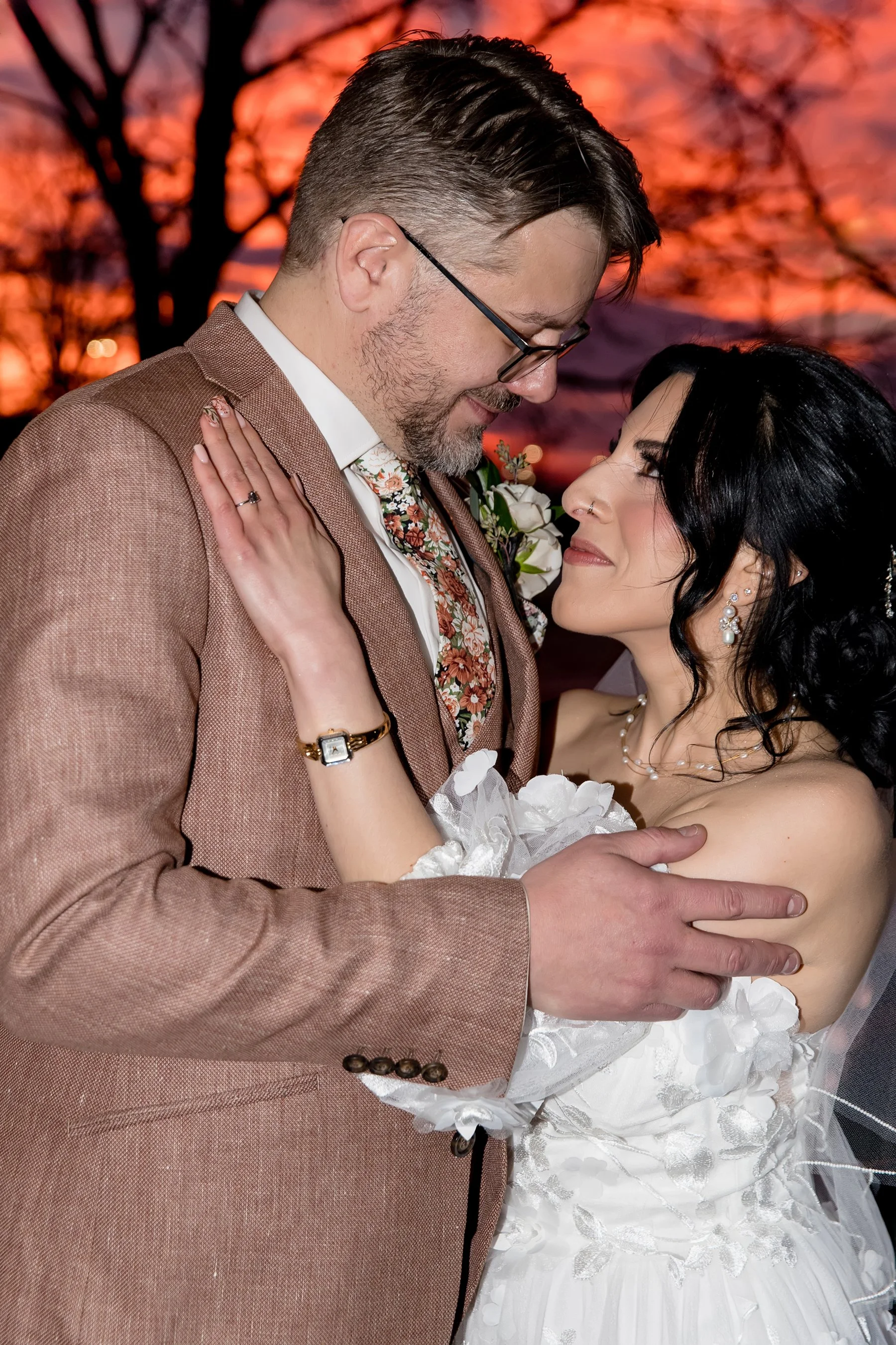 We were all so excited to be a part of Cyrena and JD’s wedding at Victoria in the Park. When we arrived Cyrena and her girls were in high spirits and Cyrena looked absolutely STUNNING in her gorgeous boho Jenny Yoo gown with fun detachable sleeves. While it was a chilly November day Cyrena and JD agreed to sneak outside for their first look and a few photos, we are so glad they braved the elements so we could get some Fall color in their gallery!! After their first look we went back inside and watched as Cyrena and JD exchanged sweet private vows in the whiskey room at Victoria in the Park. We finished with photos before the ceremony just as the sun was starting to set and were graced with THE most vibrant and unforgettable sunset of 2025.