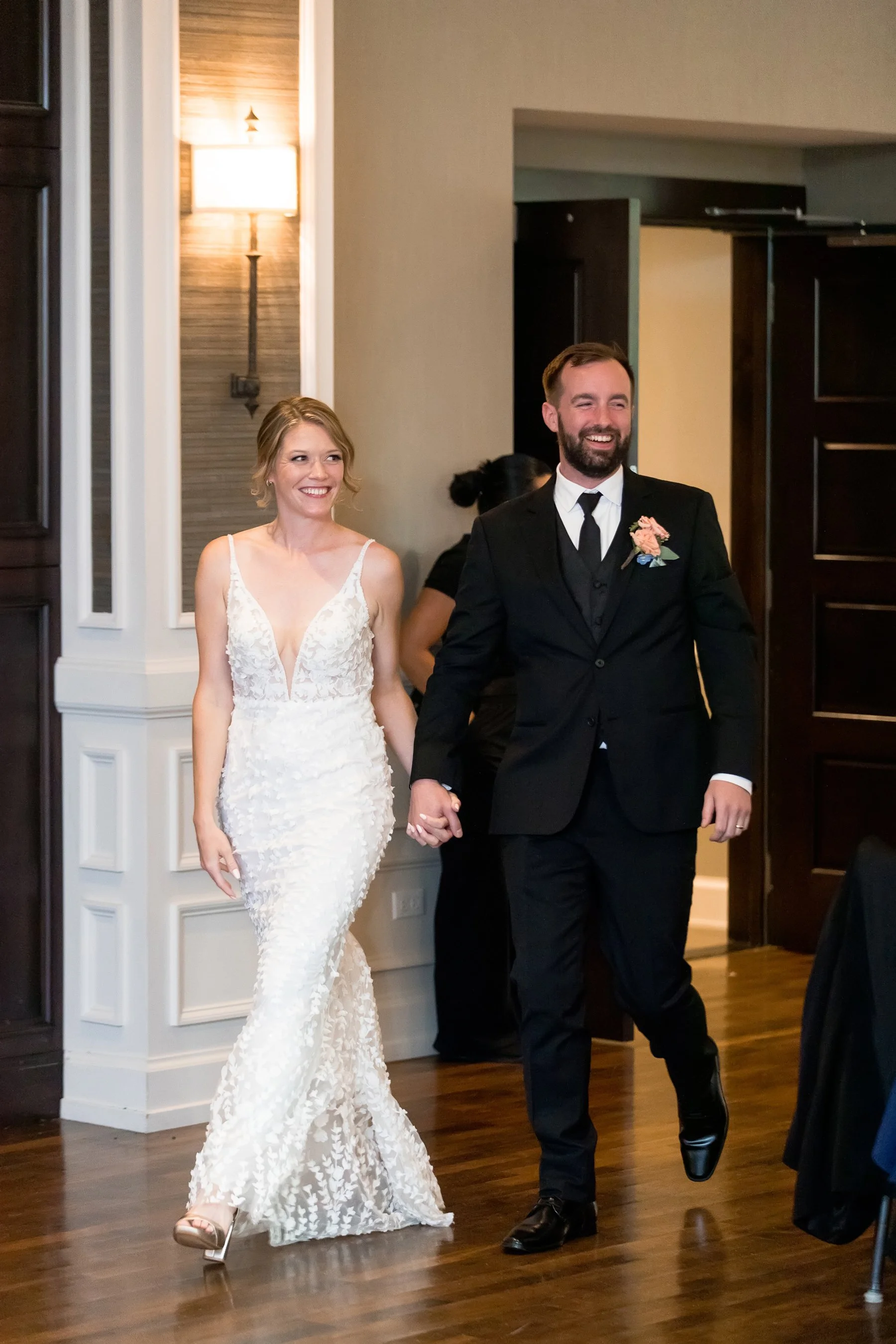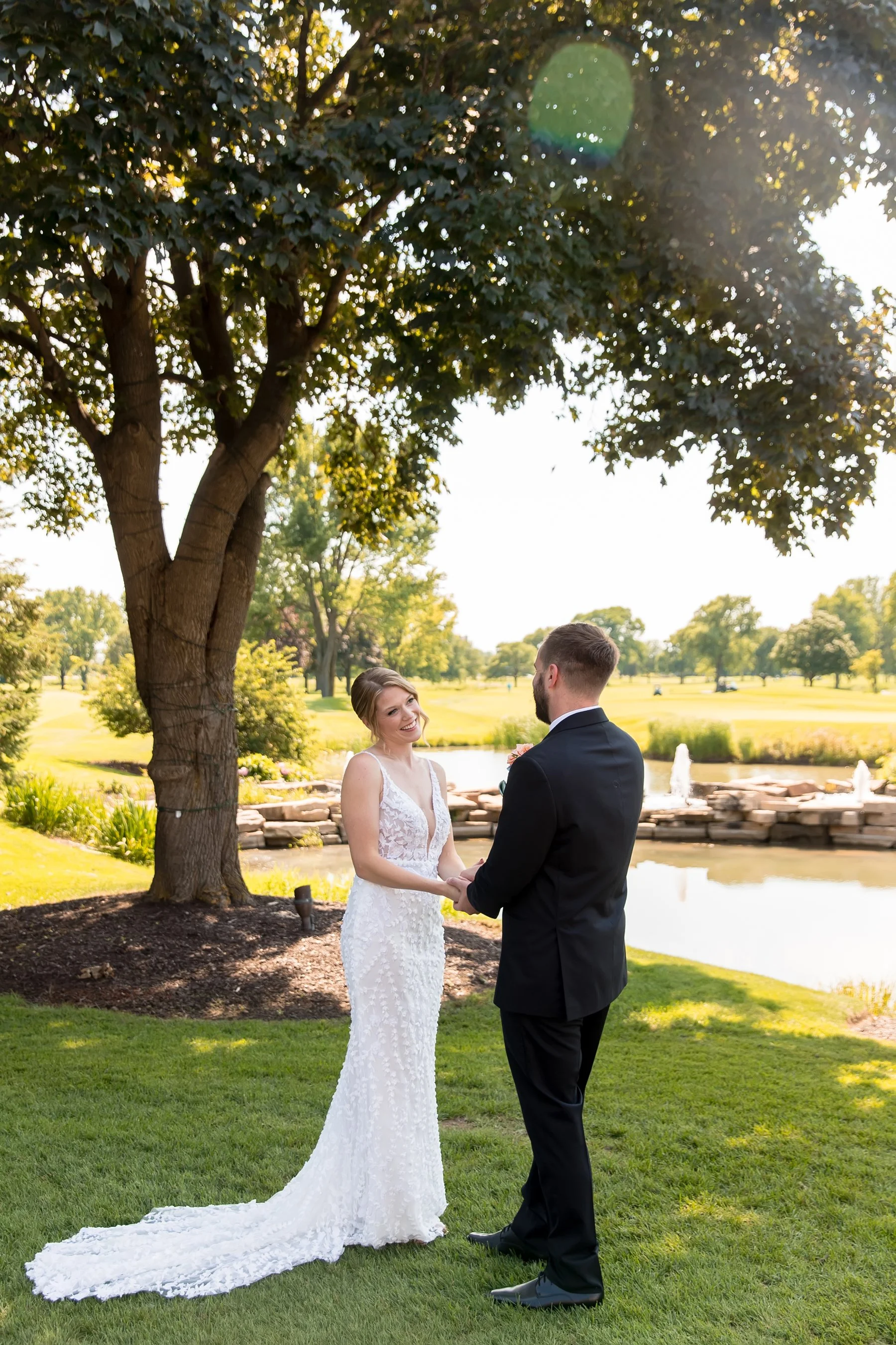 Emily and Kevin dated over long-distance for nearly a year – he lived in Chicago and she was teaching in Champaign. But Emily moved back to the Chicago area and they continued to date seriously – they moved in together shortly before their 2 year dating-anniversary and then got engaged around their 3-year anniversary. Kevin proposed in the living room and Emily was SHOCKED. Even though they had been talking about marriage for years and it was decided as something that would for sure happen, she didn't know he had bought a ring!