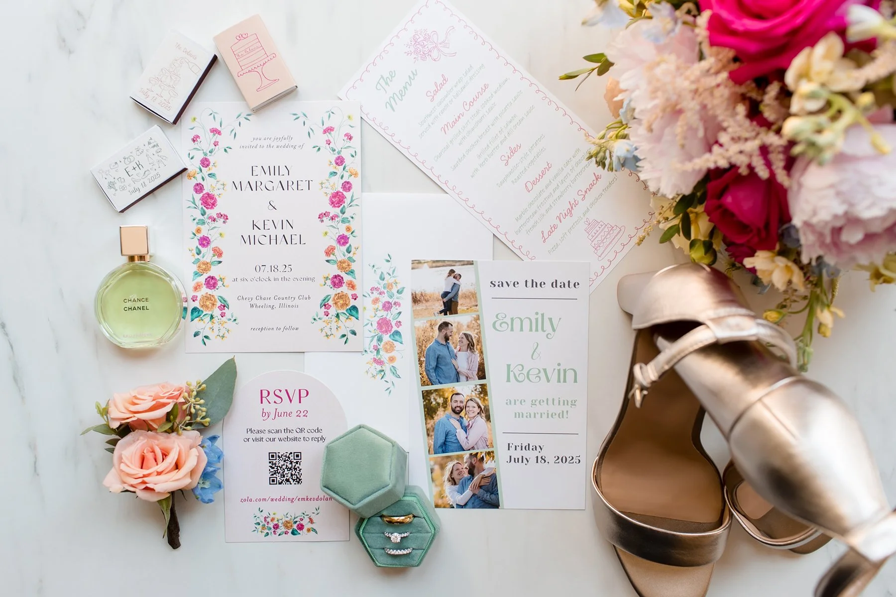 Emily and Kevin met at Hersey High School, she had a crush on him but by the time they graduated they were just good friends. They stayed in touch throughout college and even into their mid-twenties, hanging out here and there. Then in June 2021 Kevin send Emily a DM just to say “hi” and ask how she's doing – soon they agreed to go to a Cubs game together on their first date.