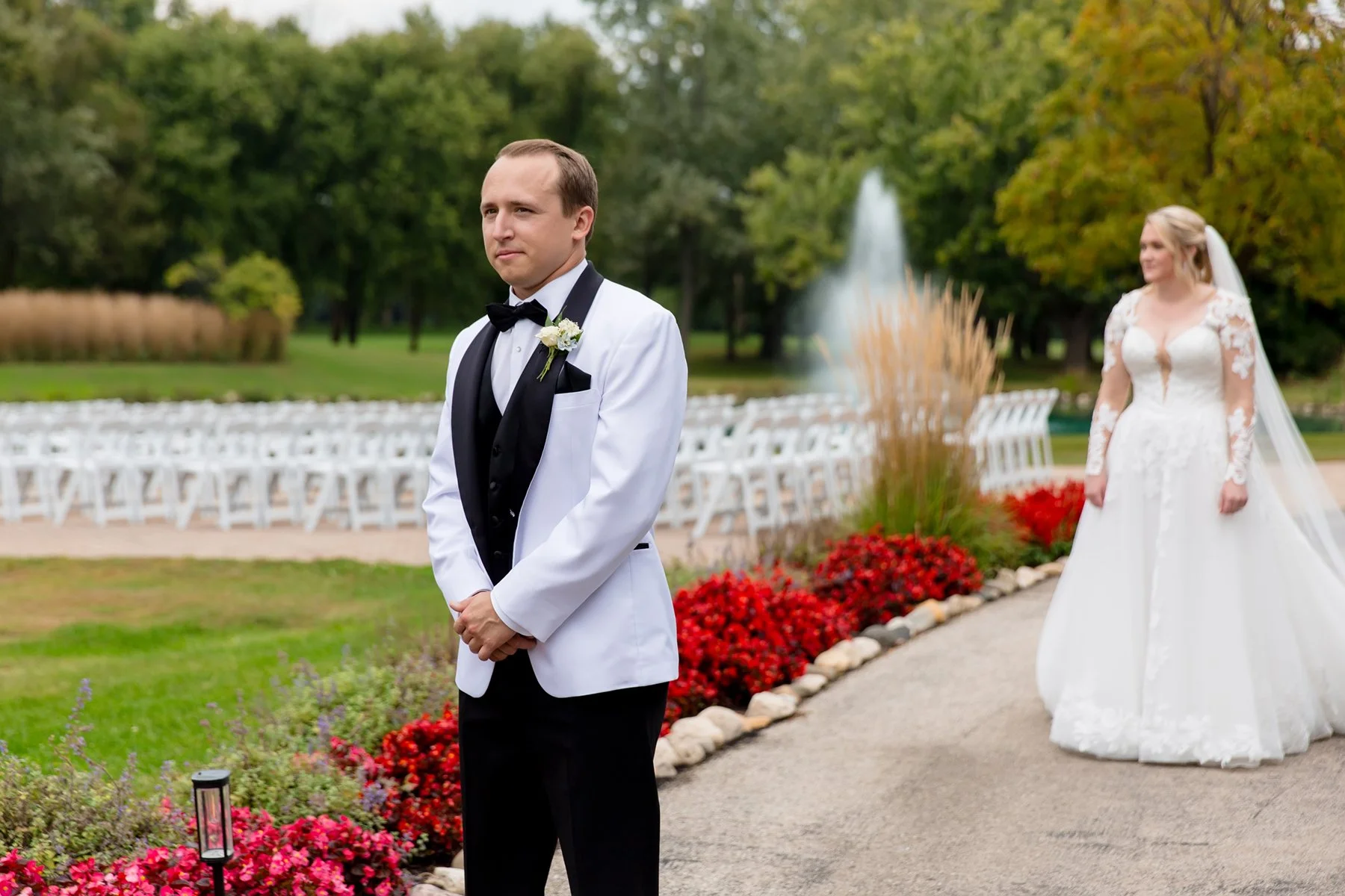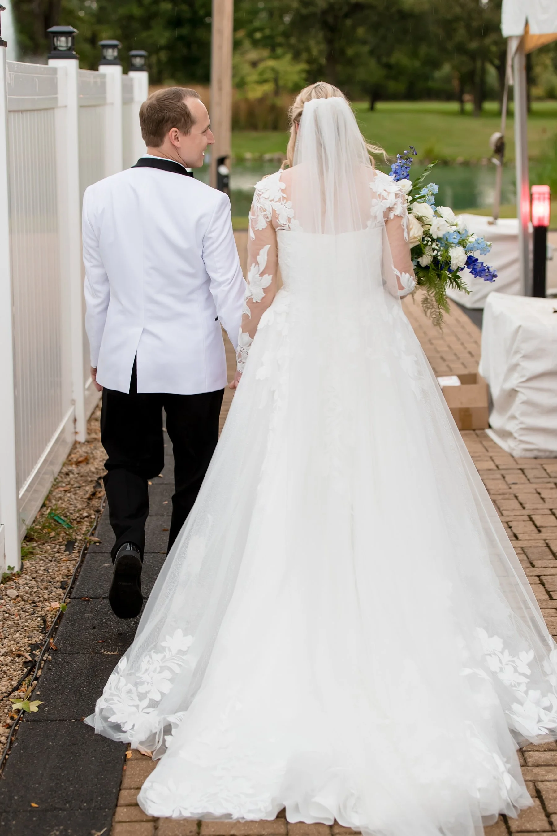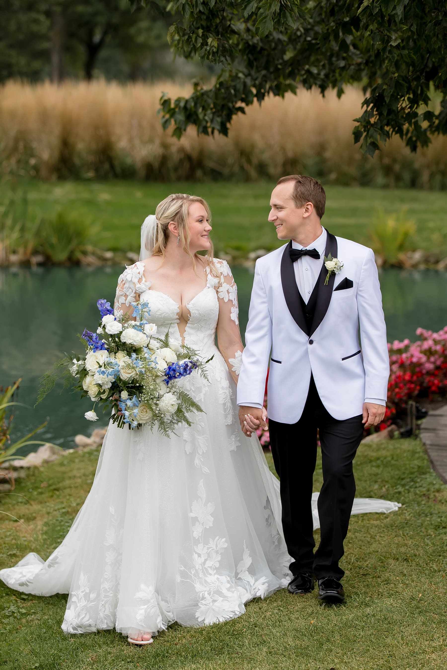 Katie looked gorgeous in her dress (with convertible sleeves!) from Volle’s, while Brad looked handsome in his wedding tux (we LOVE a groom in a white jacket!!) After their emotional first look Katie and Brad shared private vows with one another, it was really sweet for them to have this quiet moment together before joining with their large wedding party! After their ceremony Katie and Brad shared a cute moment in the aisle as husband and wife, and then the celebration really began! Katie surprised Brad with a Bears-themed groom’s cake before they took to the dance floor and danced the night away. It was such a perfect day celebrating two people who are perfect for each other!