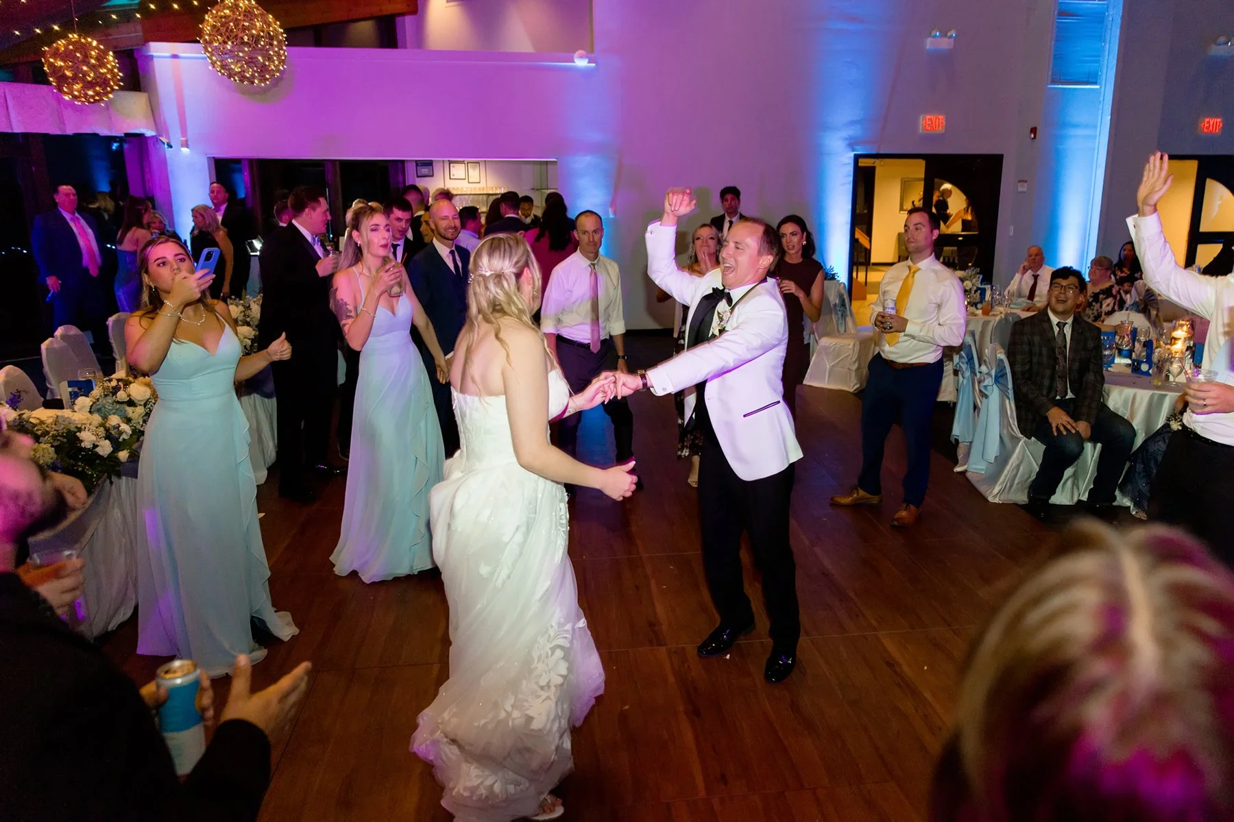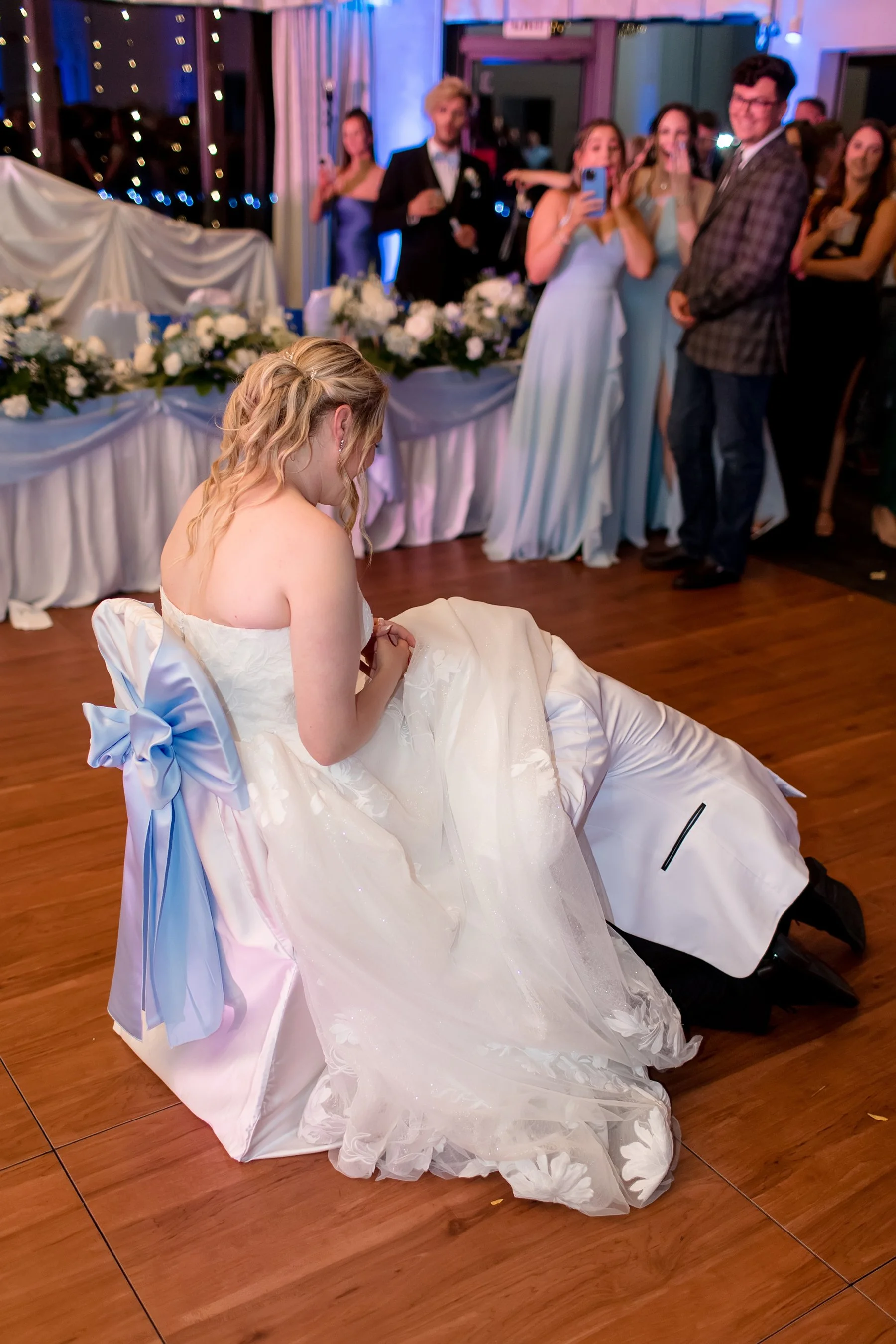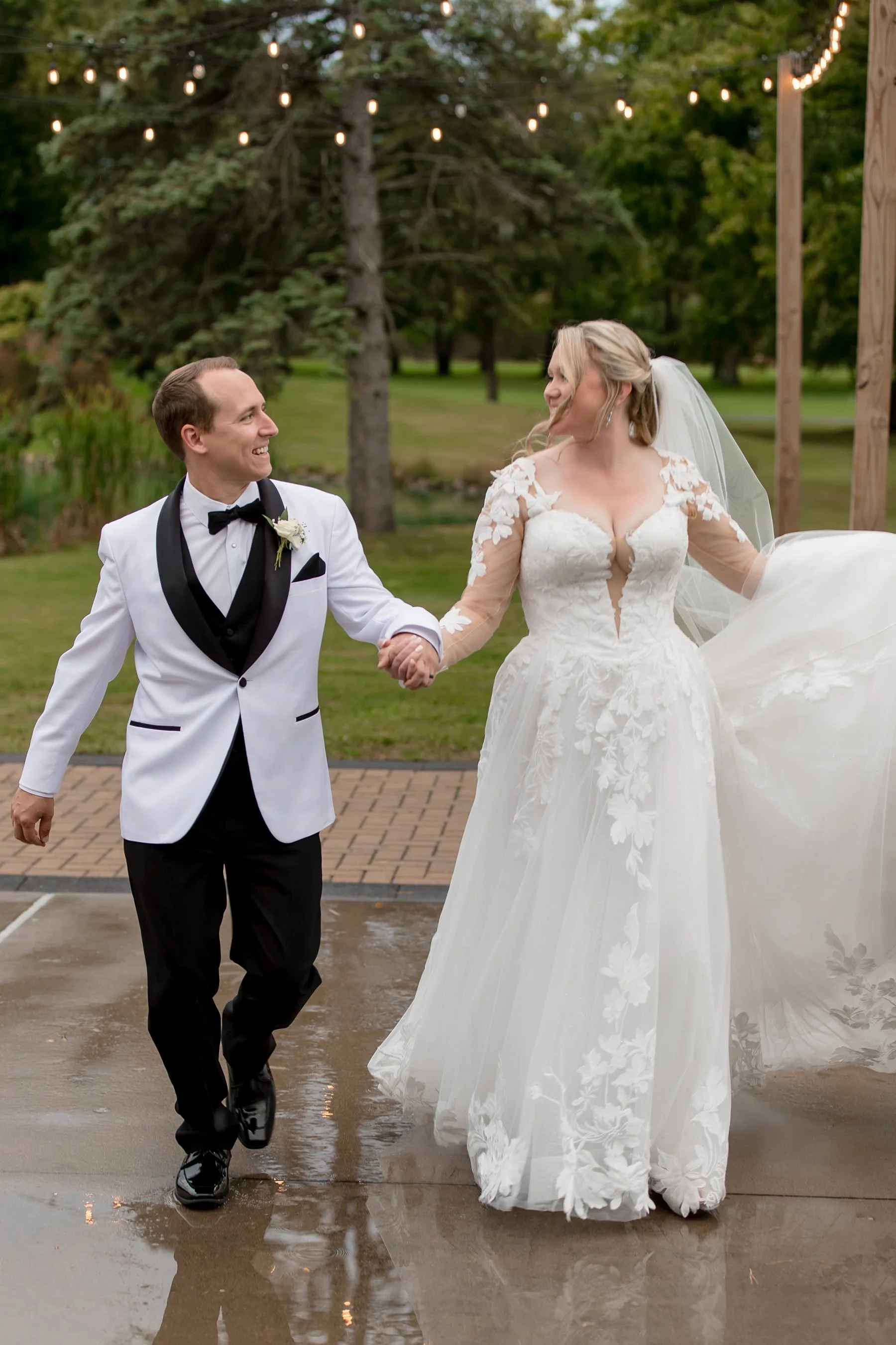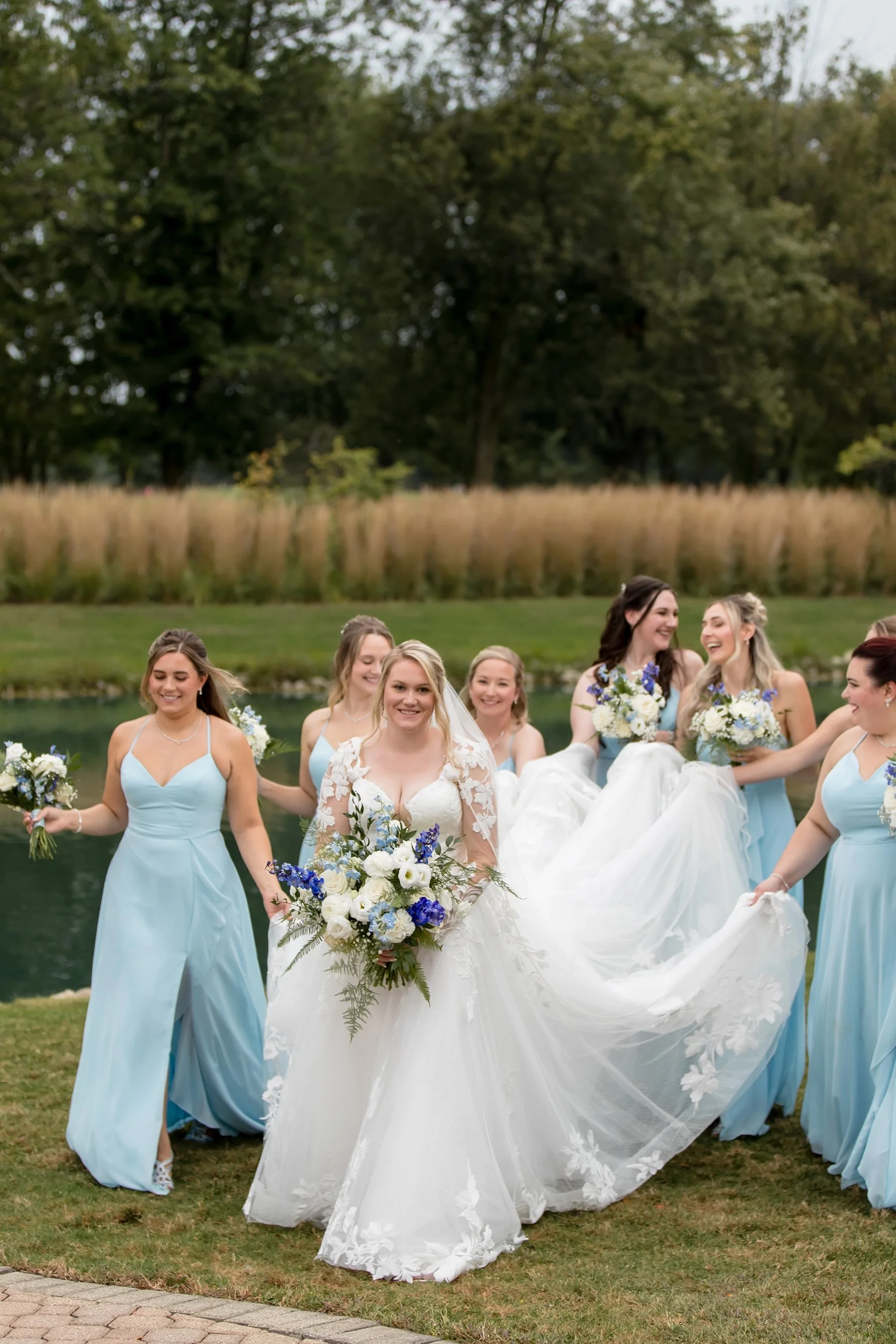 Katie looked gorgeous in her dress (with convertible sleeves!) from Volle’s, while Brad looked handsome in his wedding tux (we LOVE a groom in a white jacket!!) After their emotional first look Katie and Brad shared private vows with one another, it was really sweet for them to have this quiet moment together before joining with their large wedding party! After their ceremony Katie and Brad shared a cute moment in the aisle as husband and wife, and then the celebration really began! Katie surprised Brad with a Bears-themed groom’s cake before they took to the dance floor and danced the night away. It was such a perfect day celebrating two people who are perfect for each other!