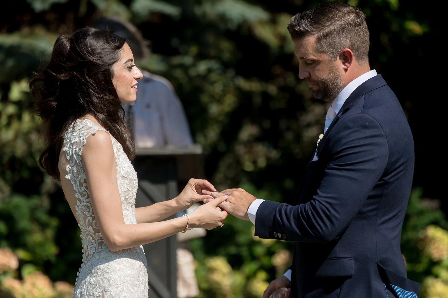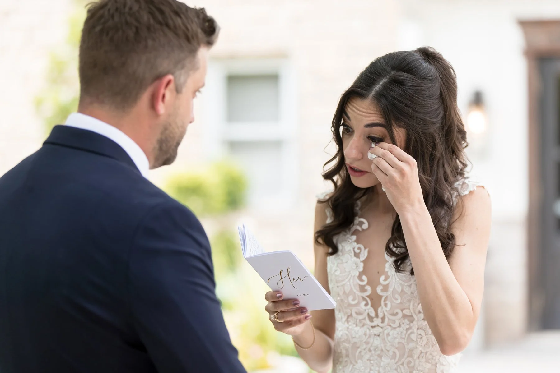 Peter fought back tears and held Jayden tight as Emily walked down the aisle. Emily’s colleague Katie from Flaherty Jeweler’s served as their officiant and did a wonderful job presiding over their romantic ceremony. The most touching moment was when Peter made time to share special vows for his new official daughters, he even had rings for Jenna and Natalie that he gave them as he promised to always love them as his own. The emotion in that moment was something that we will never forget.