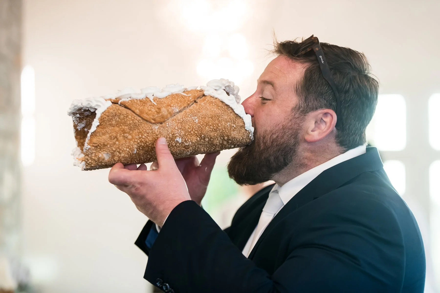 After cocktail hour Ariana and Andrew were introduced and went right into their first dance as husband and wife, it was beautiful with the sunlight streaming into the great hall. They were surrounded by the love of their friends and family and treated to some emotional toasts on their behalf. We couldn’t stop giggling when Andrew’s best man took a big bite out of the BIG cannoli that held countless little cannolis on their sweets table. And just before we departed we were grateful for some soft pretty sunset light for a few last photos of Ariana and Andrew together. It was a perfect day and we were so grateful to be a part of it!