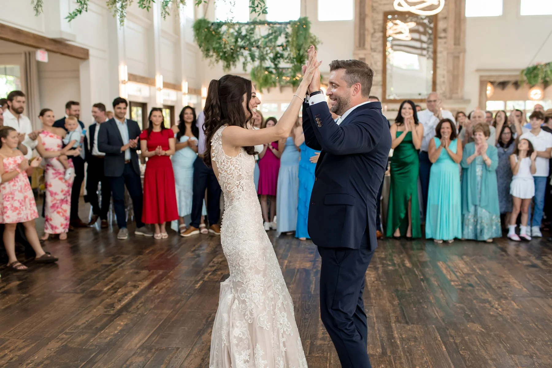 As the DJ announced Katie and Tony and their wedding party we could tell we were in for an unforgettable reception. There was SO much joy and excitement in the room for this wonderful couple!! While the guests enjoyed a delicious BBQ feast we were all treated to several emotional toasts to the bride and groom. There were powerful nods to Tony’s military past and fallen friend that the couple had honored in different ways throughout the day. And Katie’s Dad led all four parents to the front of the room for a sweet joint toast, we love seeing families come together in love! Then it came time for Katie and Tony to thank their guests and Katie did THE sweetest thing – instead of doing a bouquet toss she gave a poignant speech to thank her Mom for her support and gave her the bouquet that she had created. It was such a sweet and beautiful moment rooted in gratitude and thoughtfulness!