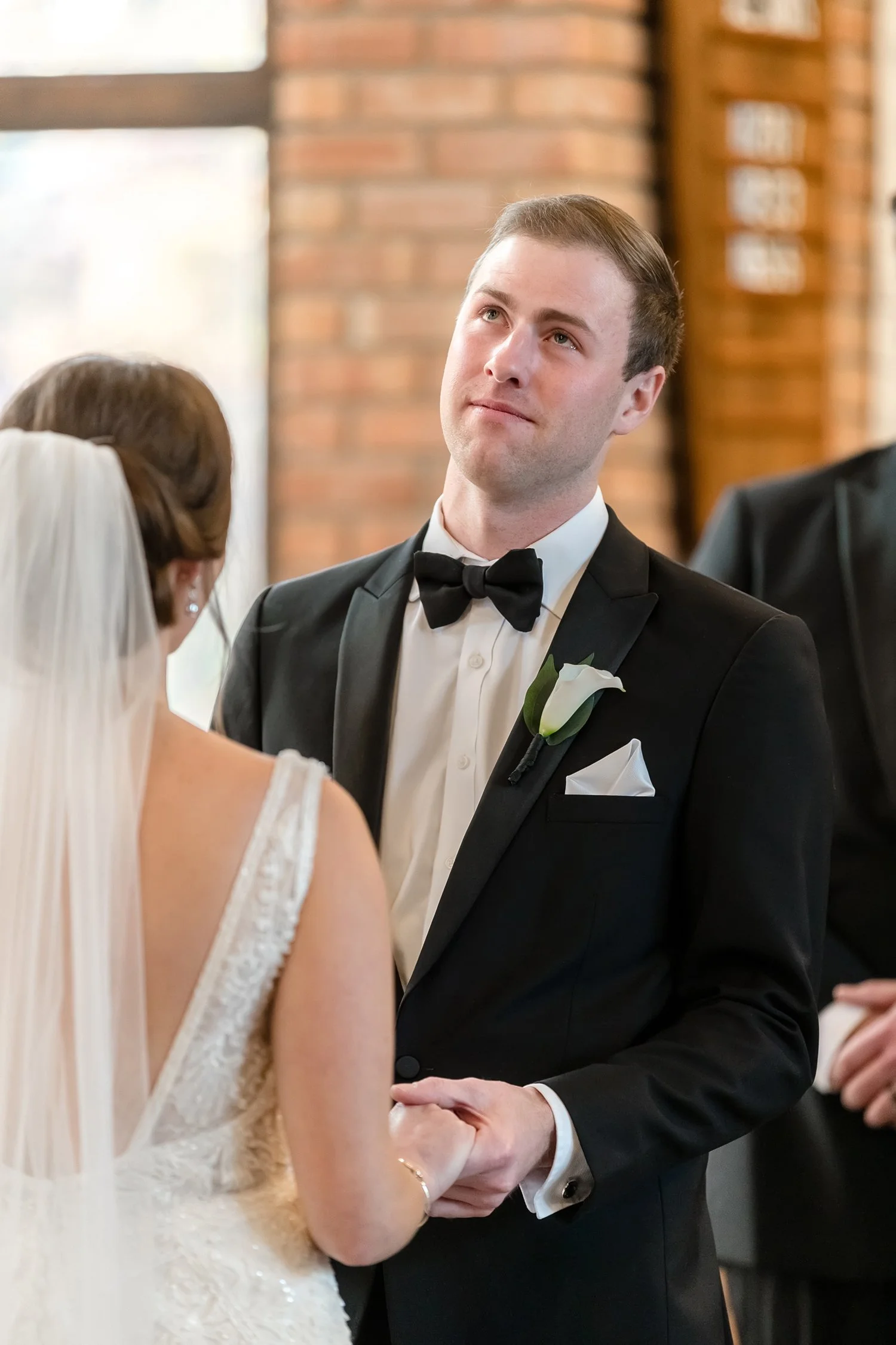 Laura looked absolutely FLAWLESS and Kyle was so sweetly emotional when he saw his bride at their “first look.” It was a blustery November day so we explored the hotel for a while for photos before braving the elements (pun intended!) to take a few outside at the Riverwalk. After we were all blasted with wind, cold and a tiny bit of precipitation we made the short drive to the ceremony.