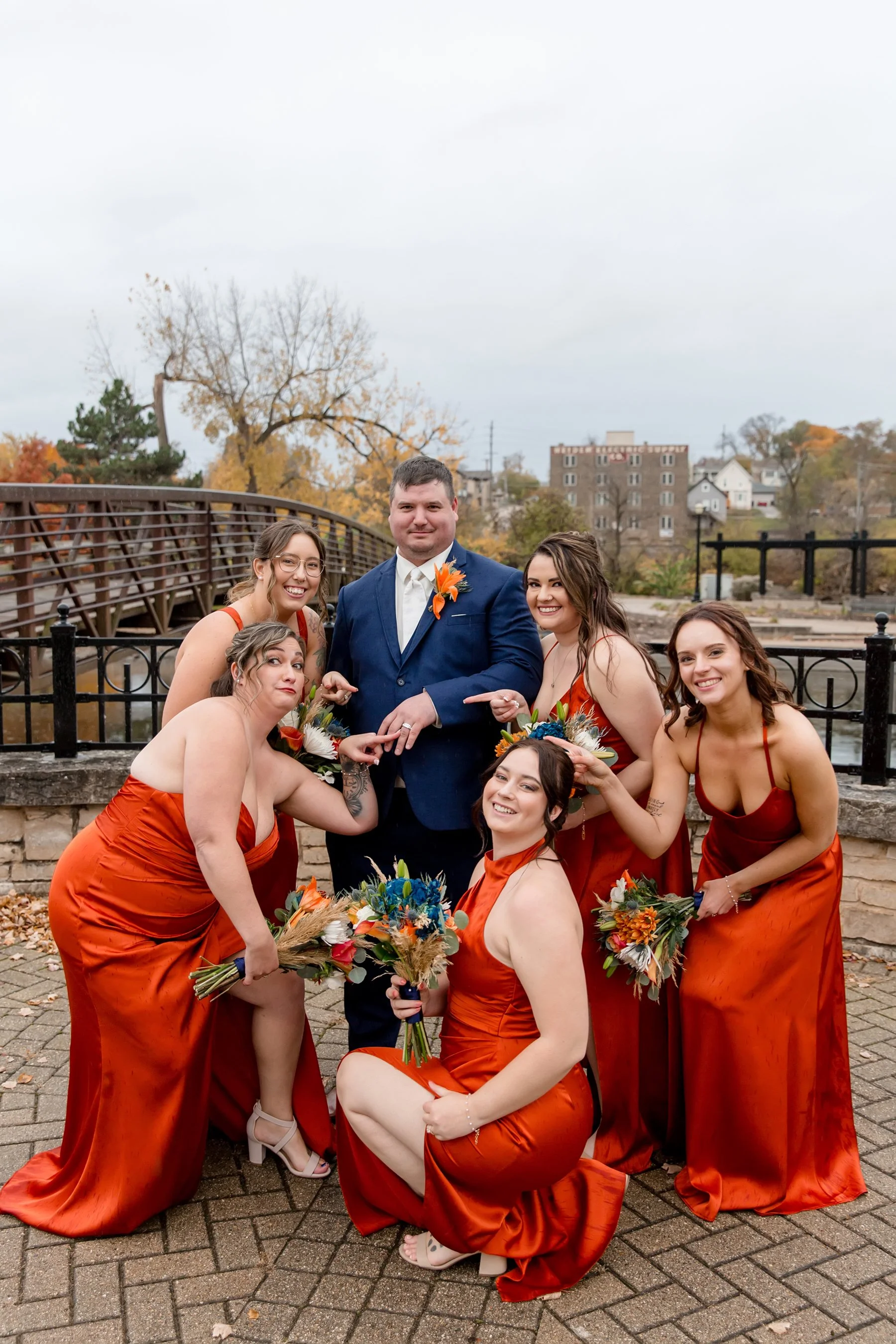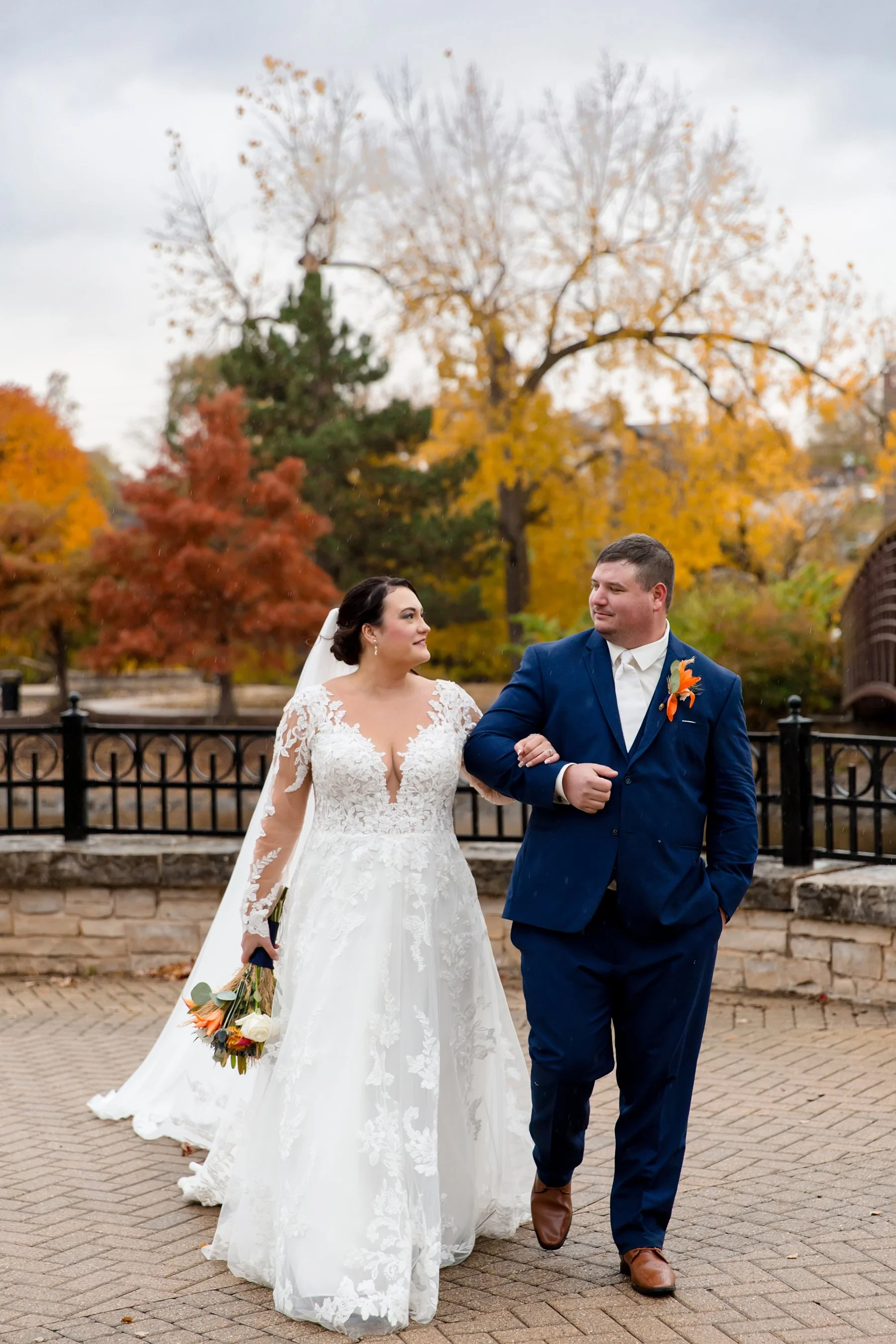Conrad was happy to spend time getting to know Katie and Jake at their engagement session earlier this year and was excited to make the trip to Storybook Gardens in Rochelle for their wedding this Fall! November weddings always bring unpredictable weather but Katie was up for anything and we managed to get SO many beautiful photos even with the conditions being less than ideal. With cute umbrellas and a bit of fortitude we managed to make it work! We were so happy to be a part of this beautiful and fun day!