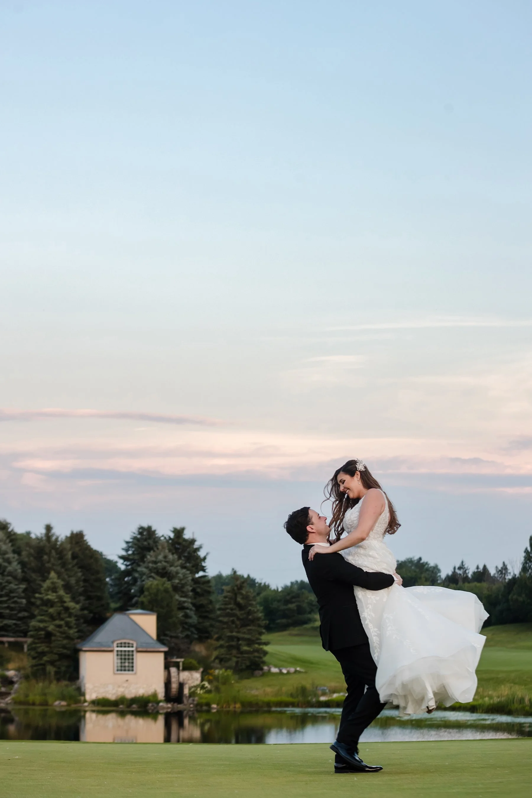 Conrad loved spending time with Emma and Brett at their engagement session last Fall and was so excited to celebrate their wedding with them this June! After a bit of a long engagement Emma and Brett were so happy to finally become husband and wife! It was quite hot on their wedding day but both Emma and Brett were troopers and made sure to take plenty of great photos outside on the beautiful grounds at Makray Memorial Golf Club. Brett carried his great-grandfather’s pocket watch and Emma wore fun blue shoes, we just love the little details that make each wedding special!