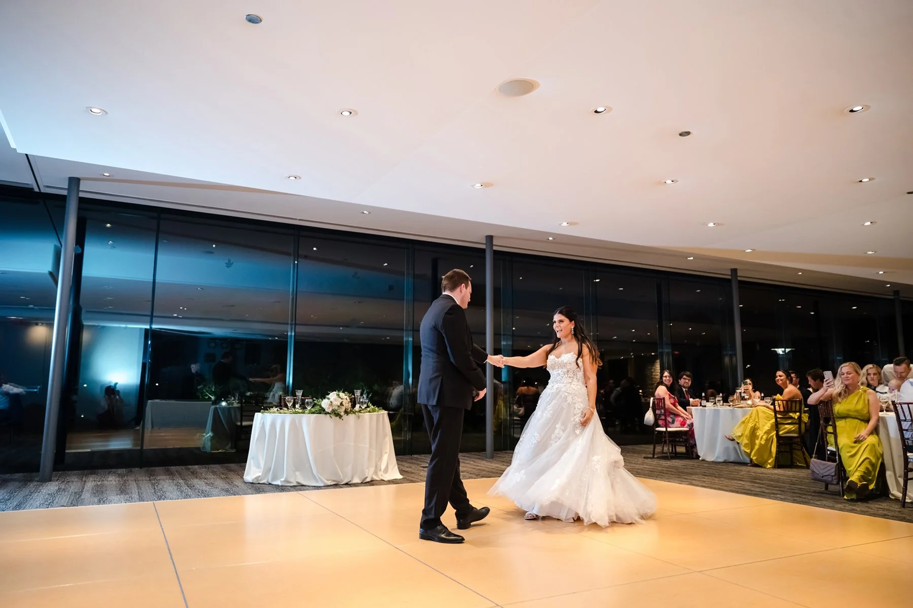 Once Emma and Brett were pronounced husband and wife everyone made their way upstairs to celebrate with a beautiful reception hosted by our friends at Makray. The dramatic twisting staircase was transformed with greenery by Twigs and Blooms, according to our resident green-thumb Lindsay these were some of the most stunning wedding florals we have ever seen. Emma and Brett were graced with a gorgeous sunset, we captured some pretty photos of them together outside before settling into a night of dancing to celebrate the newlyweds. It was the most beautiful day and we were so grateful to be a part of it!